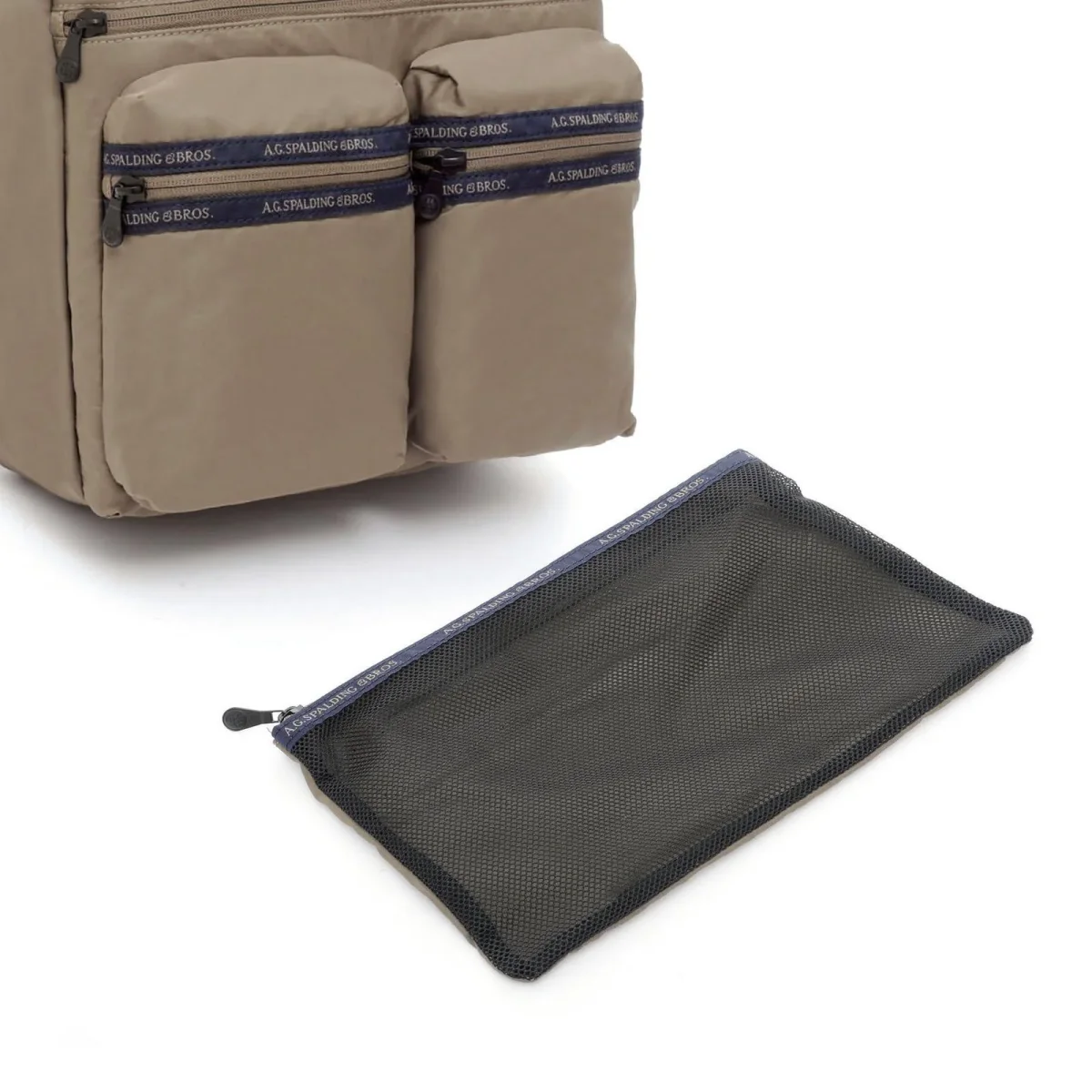 2 tasche esterne chiuse con zip con logo A.G.Spalding&Bros. cucito vicino alla cerniera.