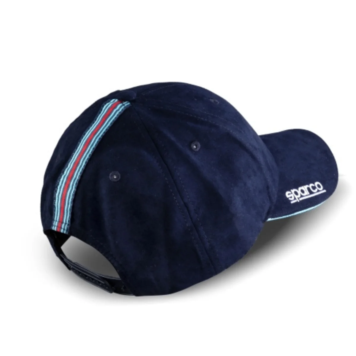 Cappello da baseball Sparco 01341 versione con logo Martini Racing decentrato e ricamo a striscia sul retro.