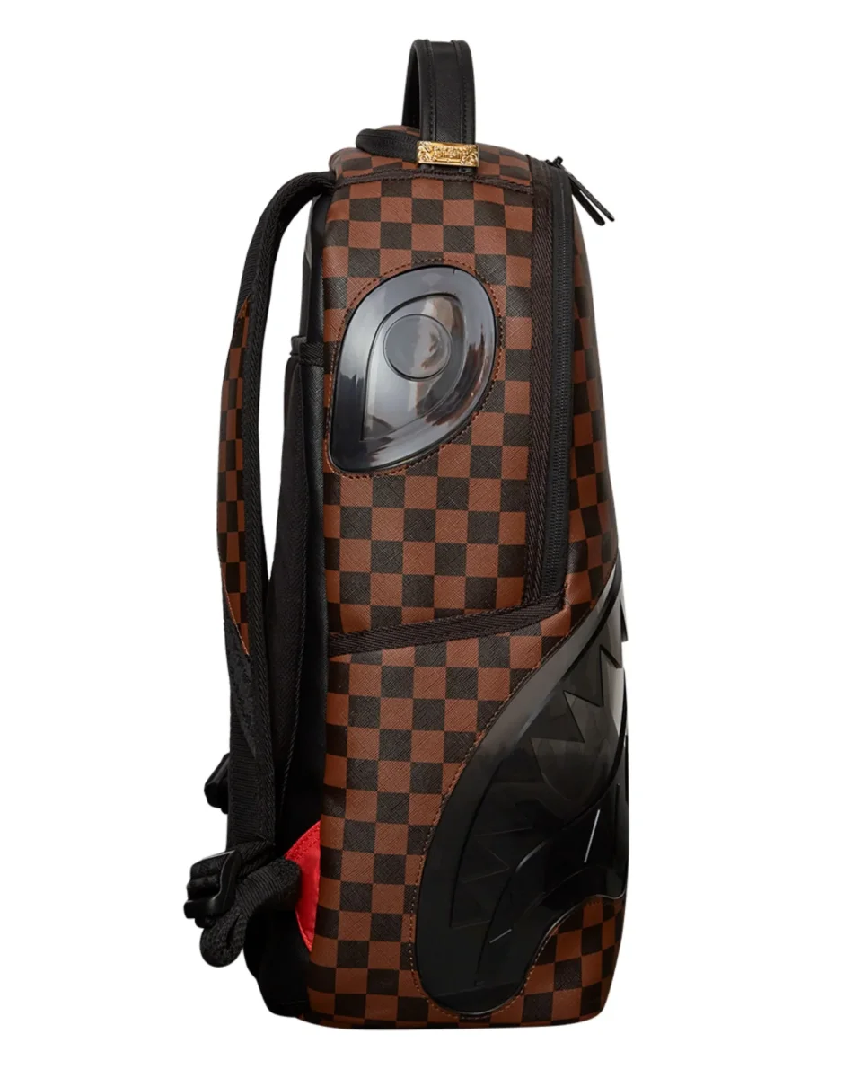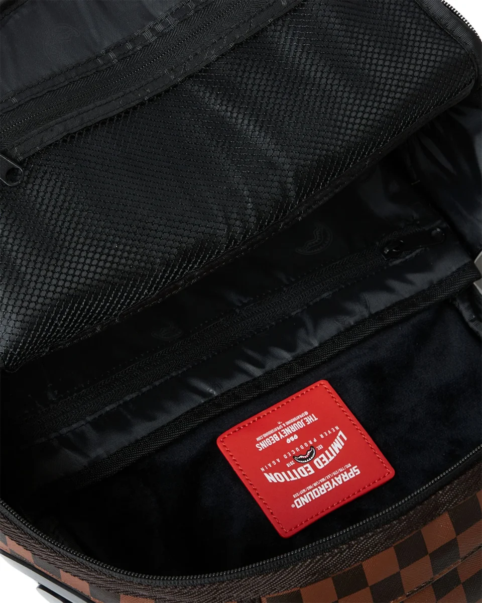 Iconico “morso” realizzato in materiale plastico trasparente di colore nero, rende visibile dall’esterno il contenuto dello zaino.
