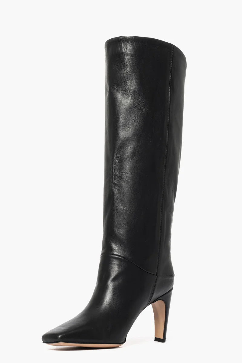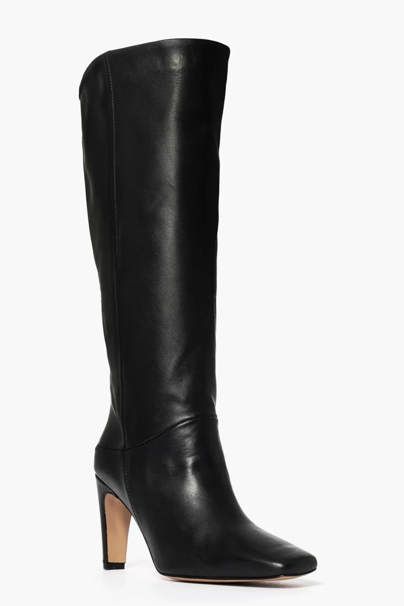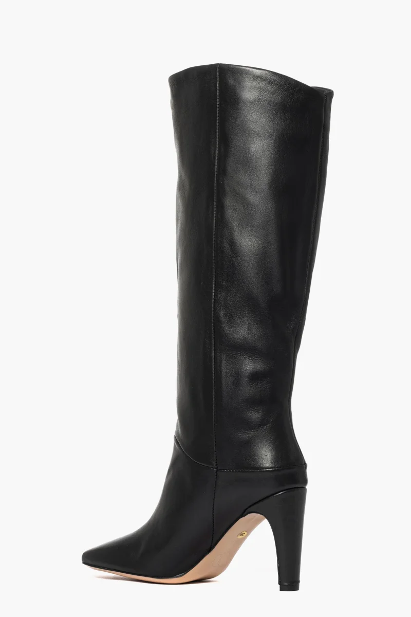 Stivale pelle nero punta quadrata, tacco rivestito 9, interni in similpelle, calzano regolari. Calzature artigianali, made in Italy.