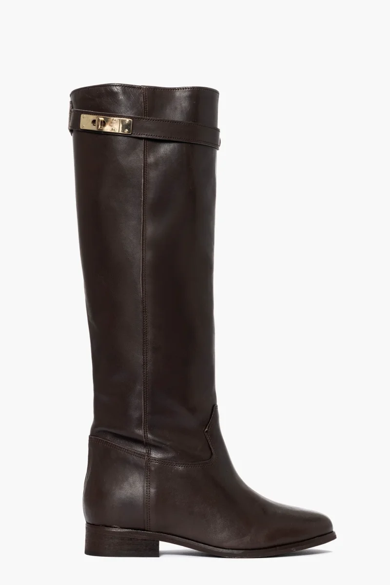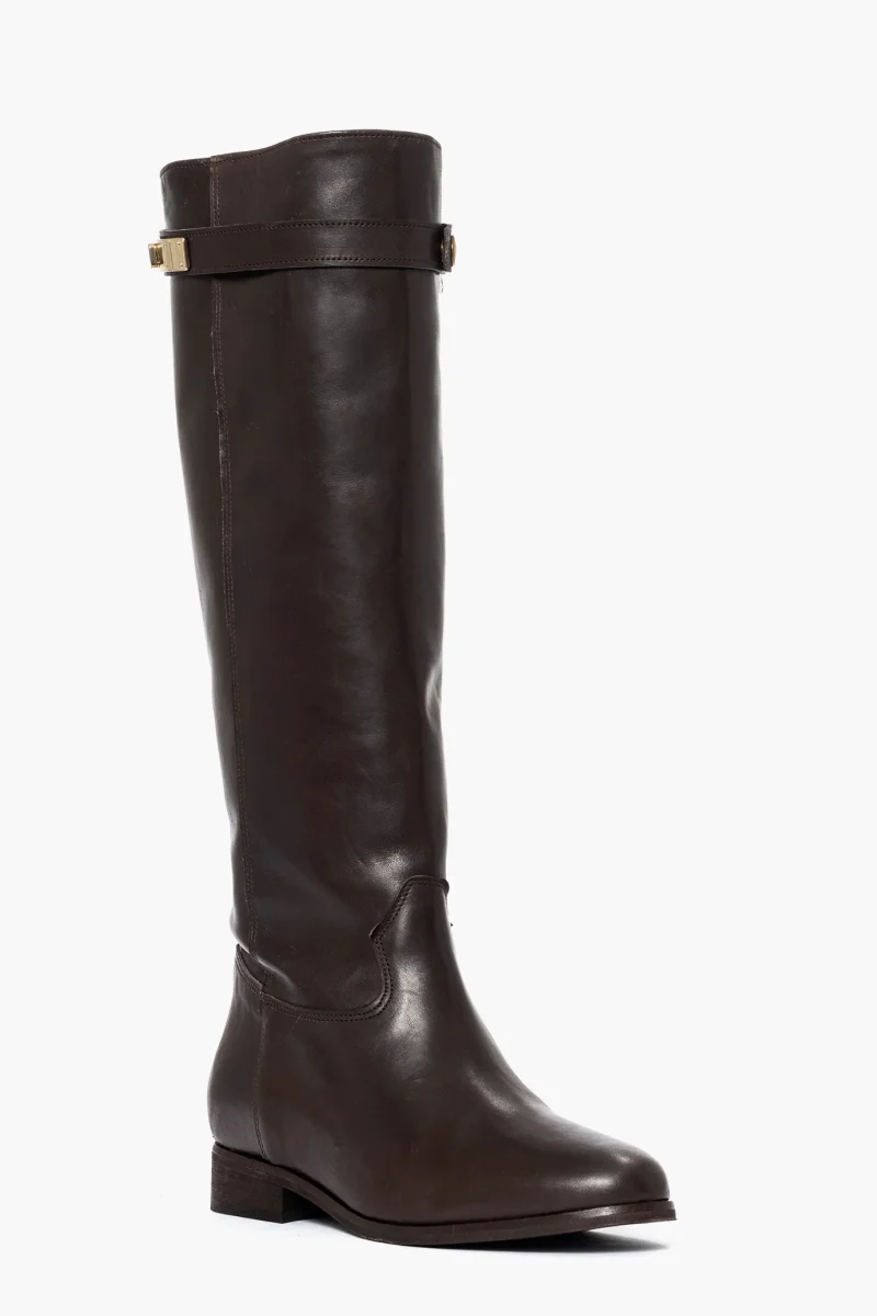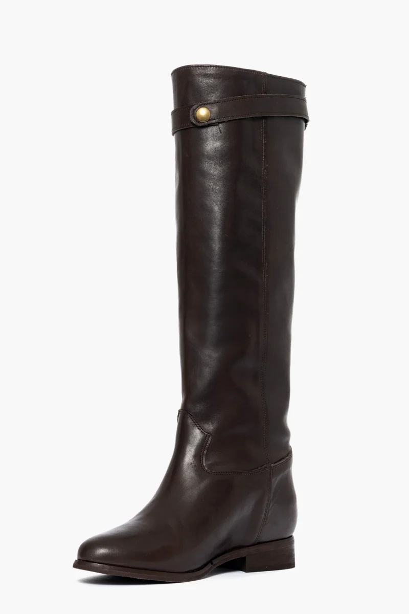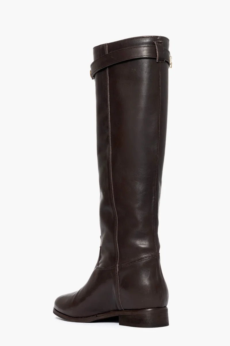 Stivale con rialzo interno in pelle testa di moro, cintura estraibile con accessorio nel colore oro, rialzo interno 3, totale 6/7, interni in similpelle. Calzano regolari, punta tonda in avanti. Calzature artigianali, made in Italy.