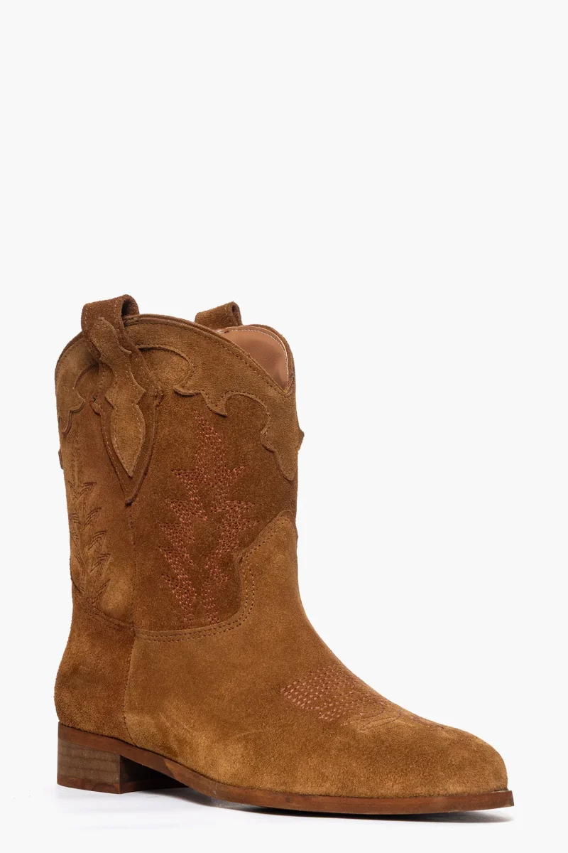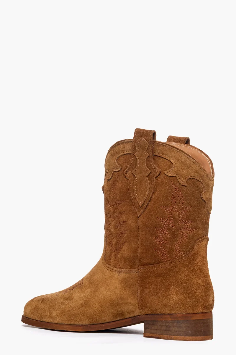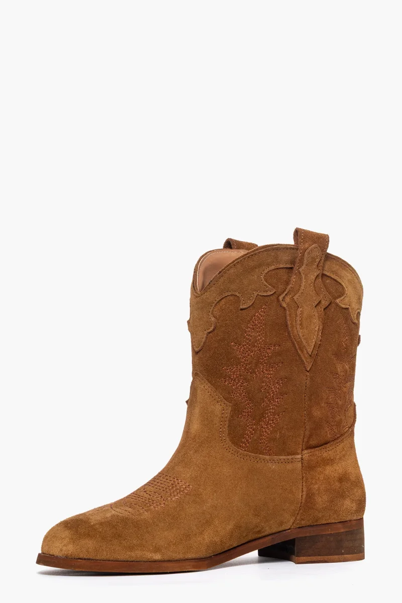 Stivaletti camoscio cuoio con ricami, interni in similpelle, suola neutra spazzolata, 3. Calzano regolari, punta tonda. Calzature artigianali, made in Italy.
