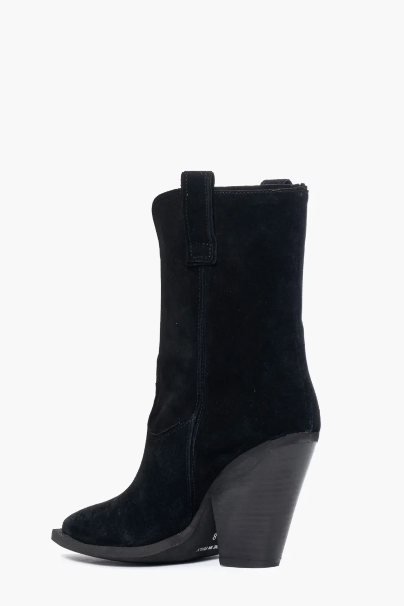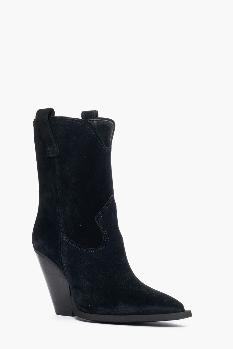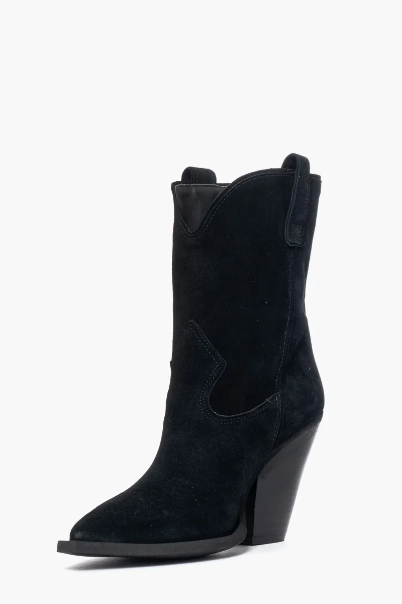 Stivaletti in camoscio nero, interni in similpelle, tacco 9, spazzolato, calzano regolari. Calzature artigianali, made in Italy