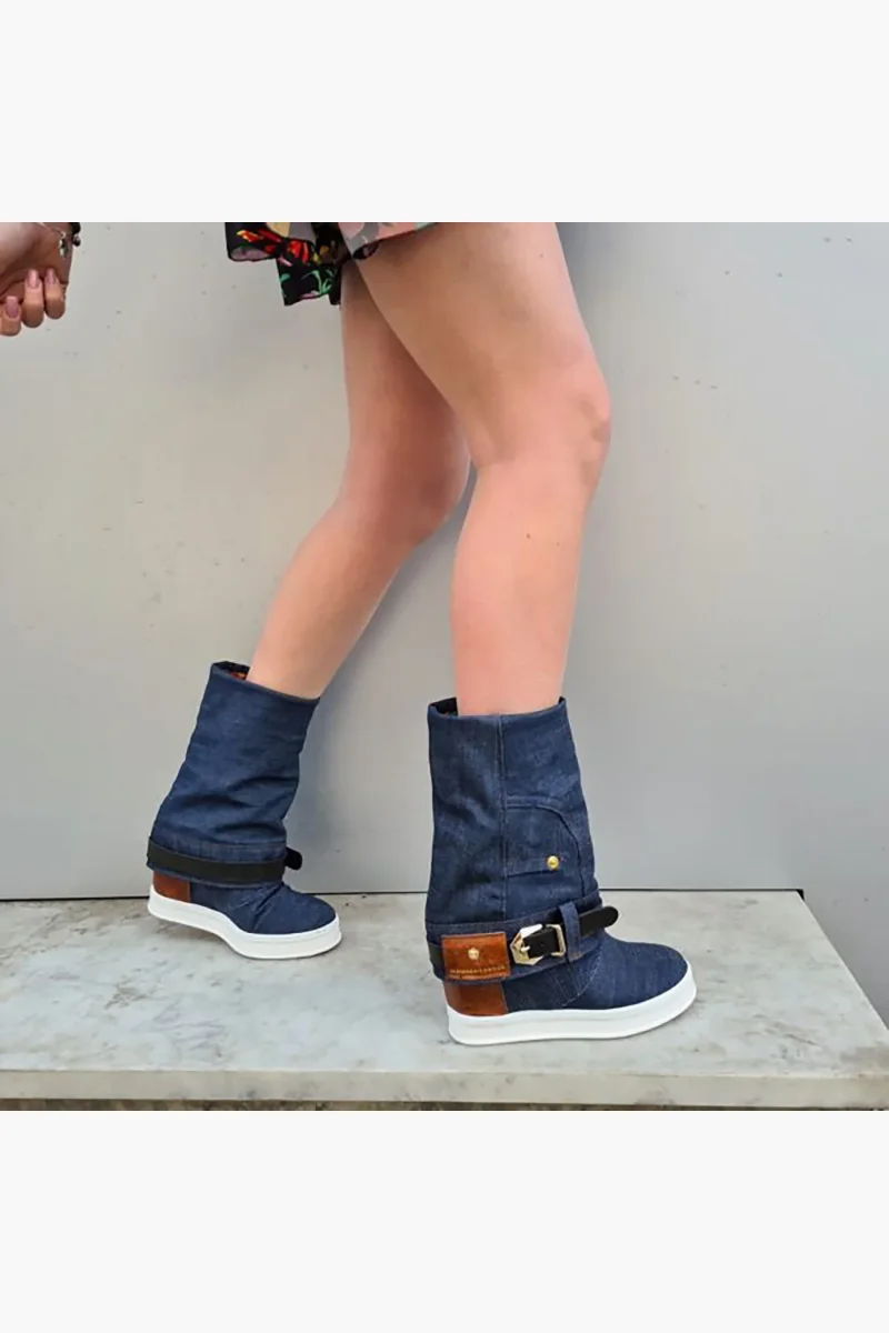 Stivaletti Full Upp Side jeans blu con risvolto