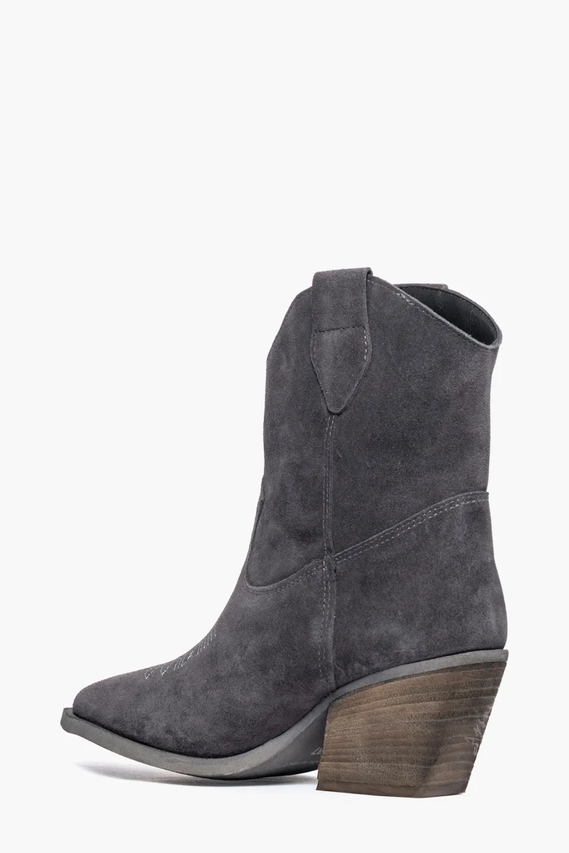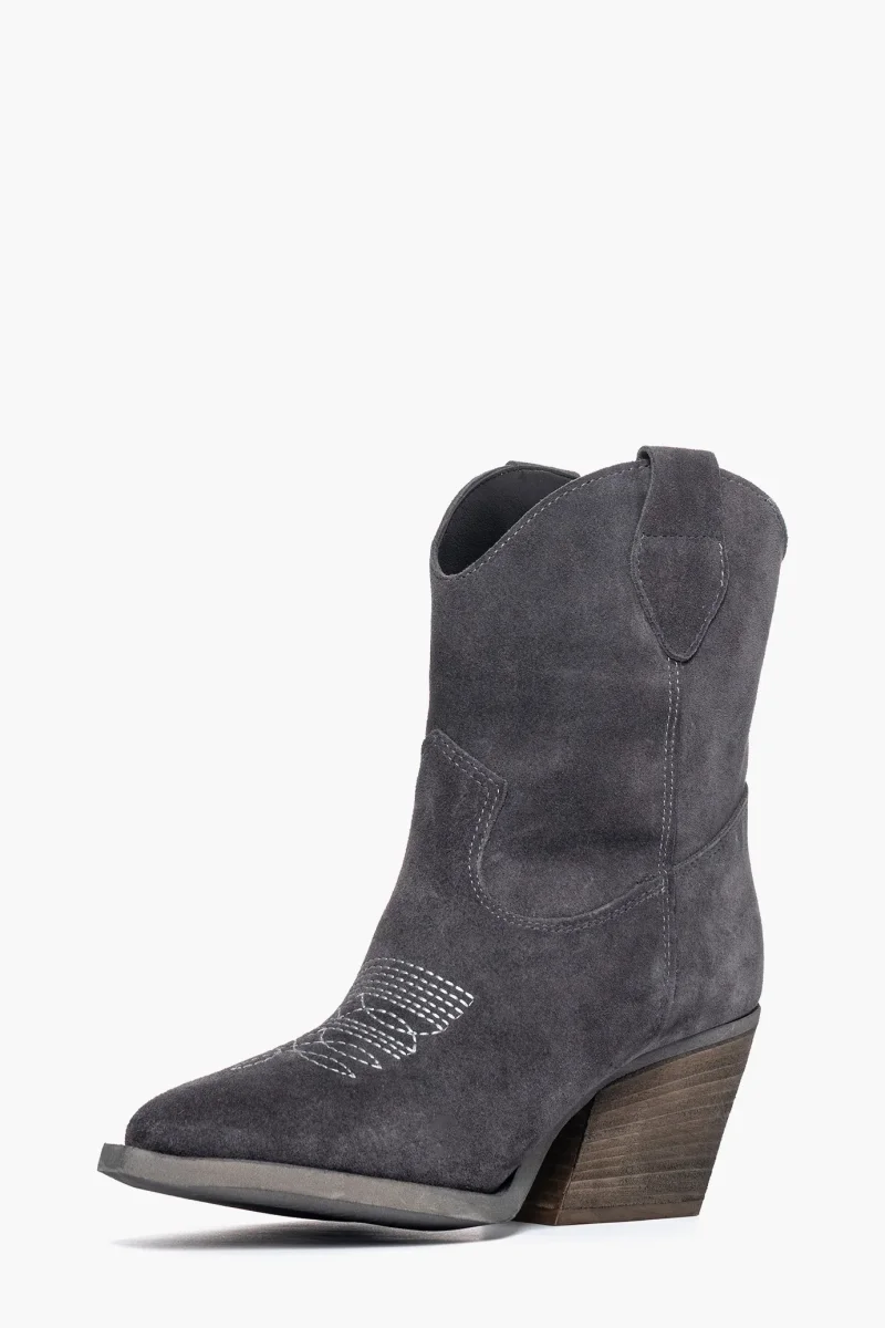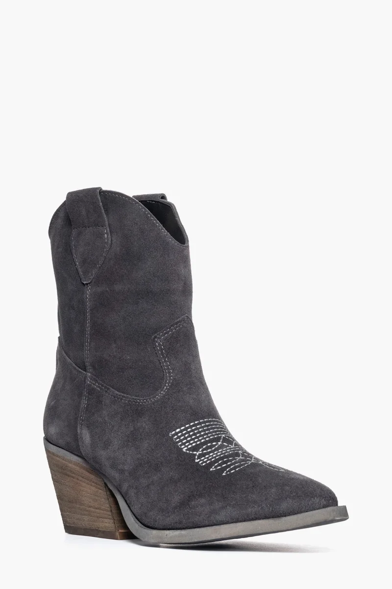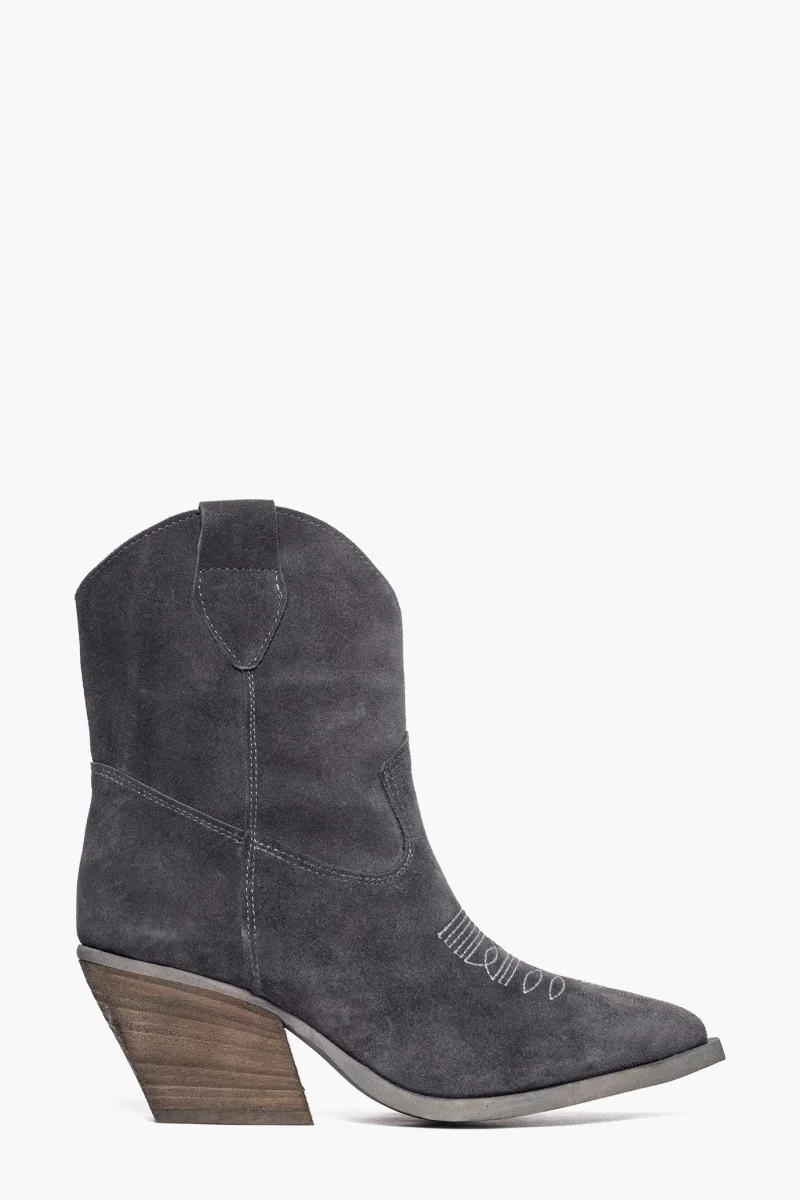 Stivaletti Irene 53 camoscio grigio con ricamo