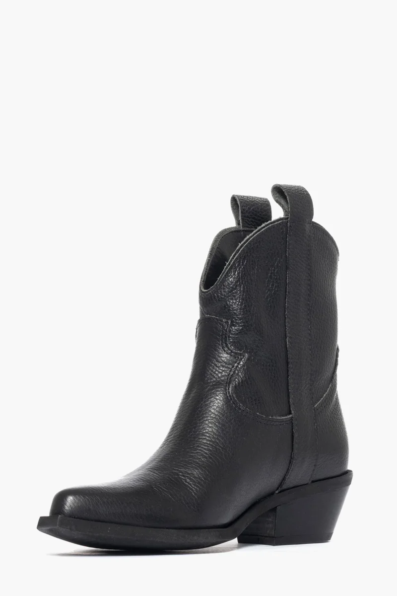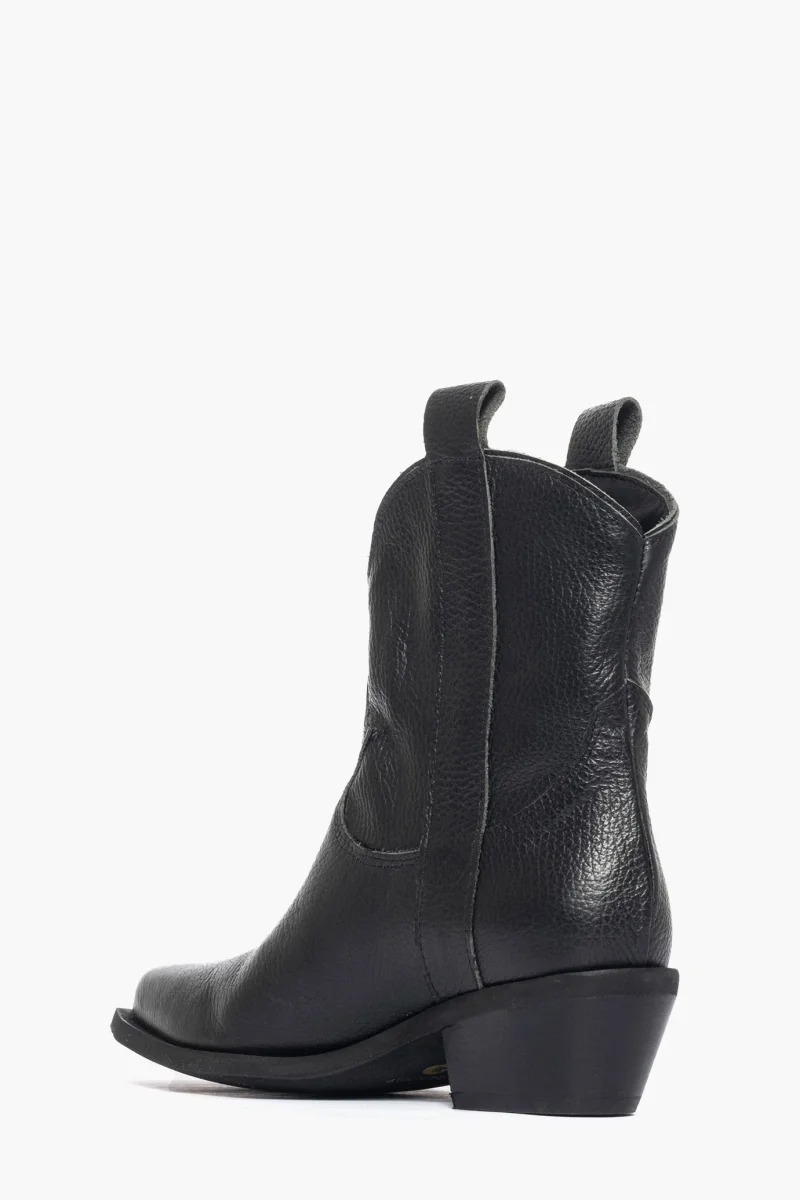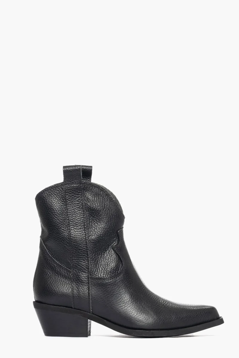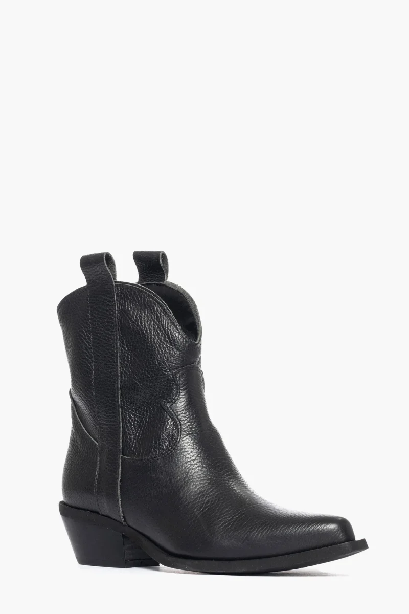 Stivaletti in pelle nera bottalata privo di cerniera, interni e sottopiede in similpelle, tacco 3 con suola in micro duro, calzano comodi, calzature artigianali, made in Italy.