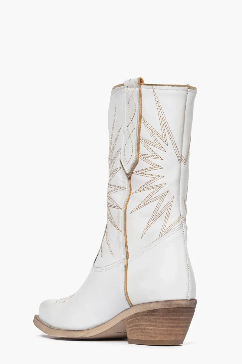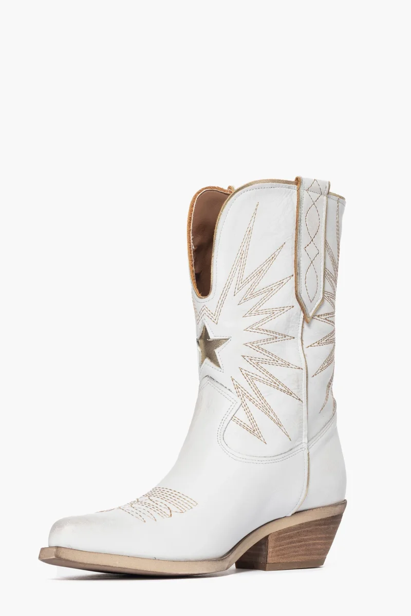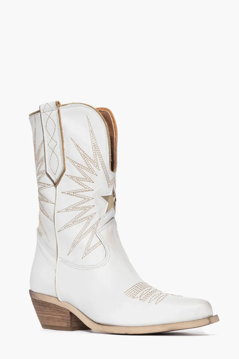 STIVALETTI PELLE BIANCO E RICAMO ORO OLDWEST 92 LIA DIVA
