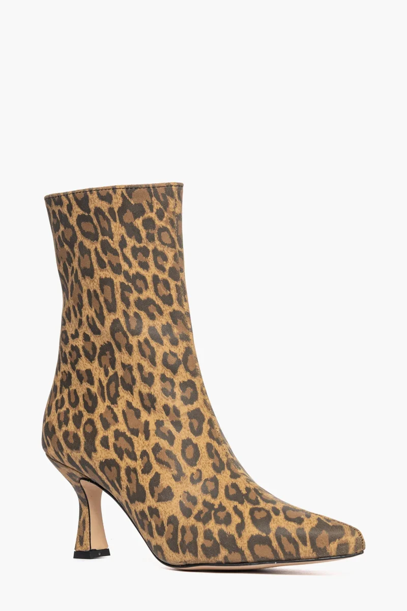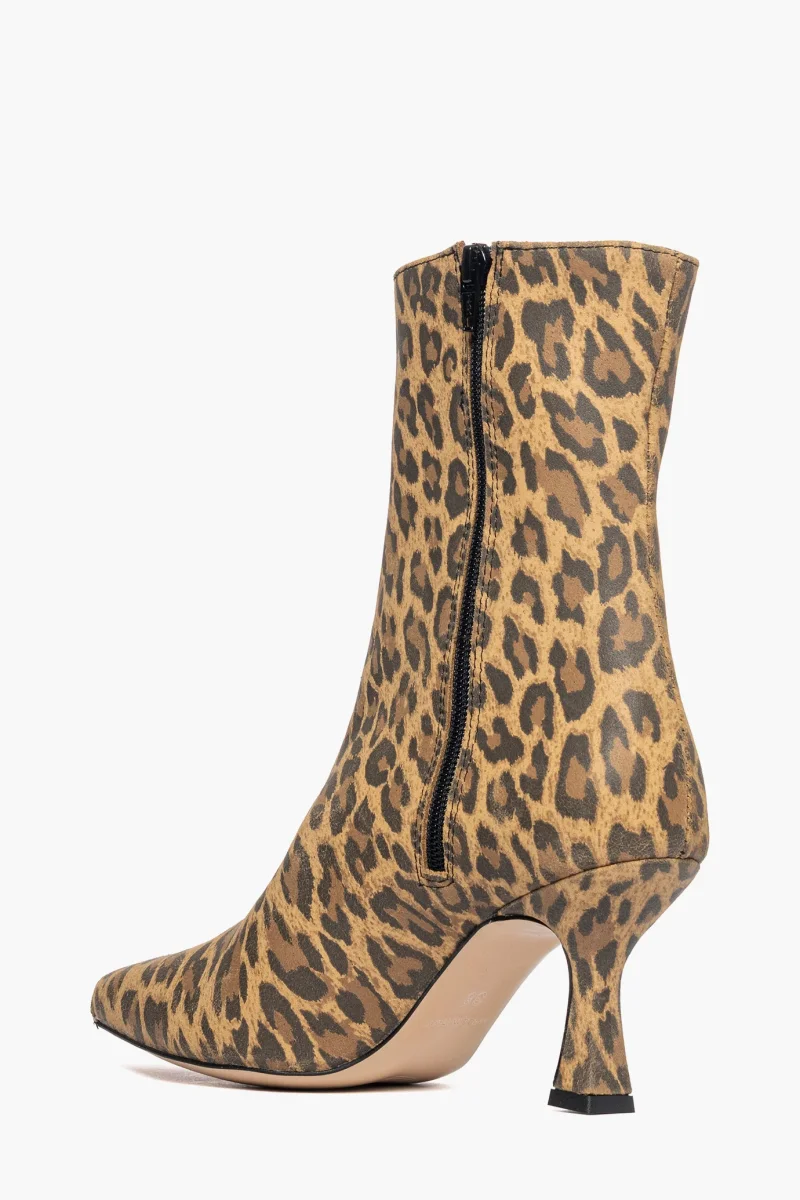 Stivaletti in pelle animalier, con cerniera interno piede, lo rende più aderente alla caviglia, tacco rivestito, altezza 8.5, interni in similpelle. Calzano regolari, punta in avanti. Calzature artigianali, made in Italy.