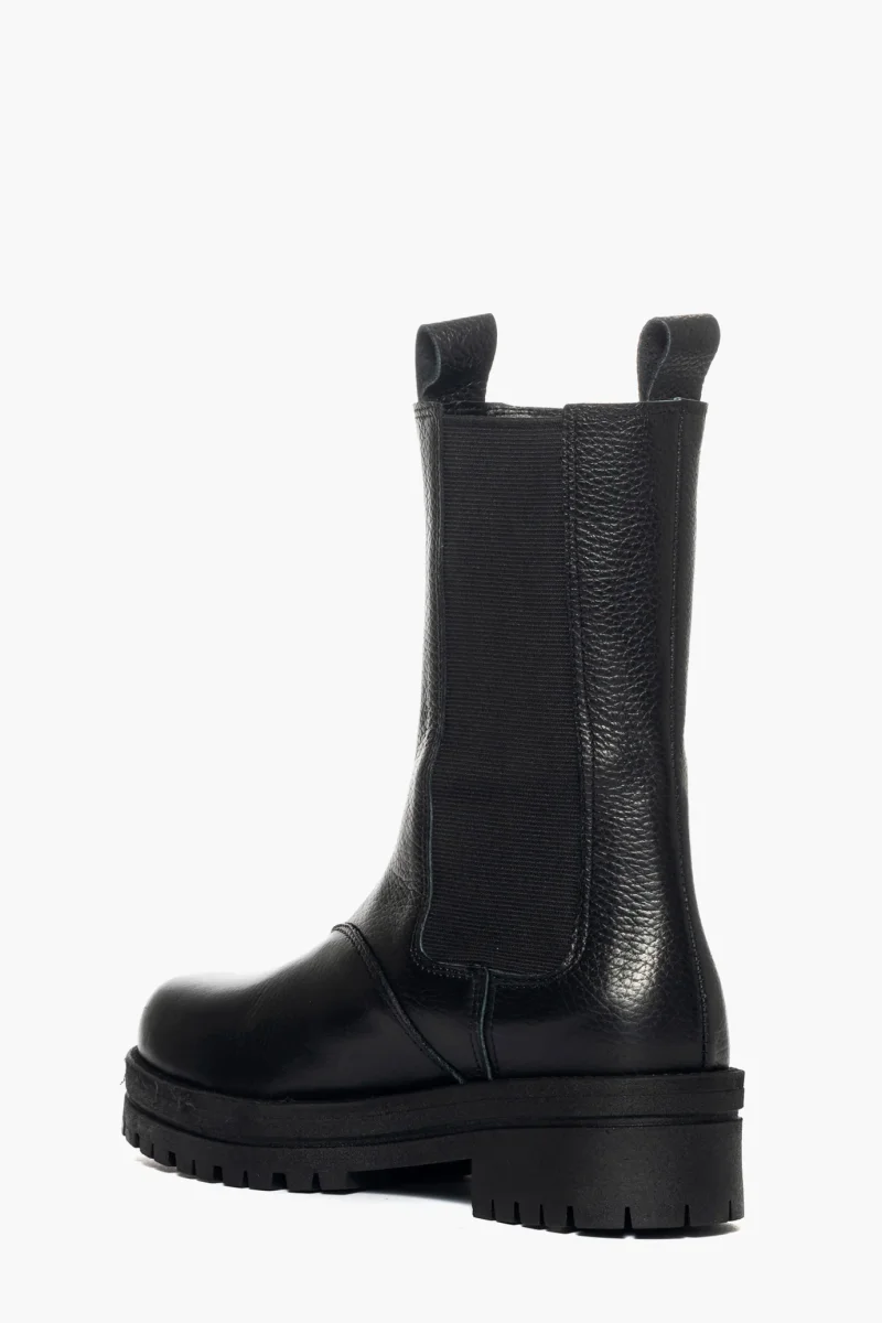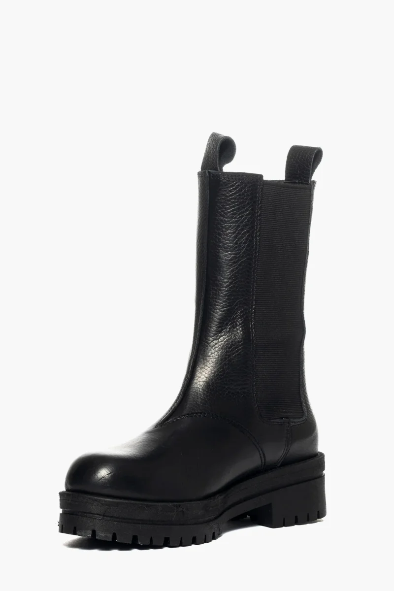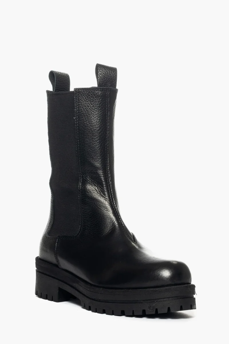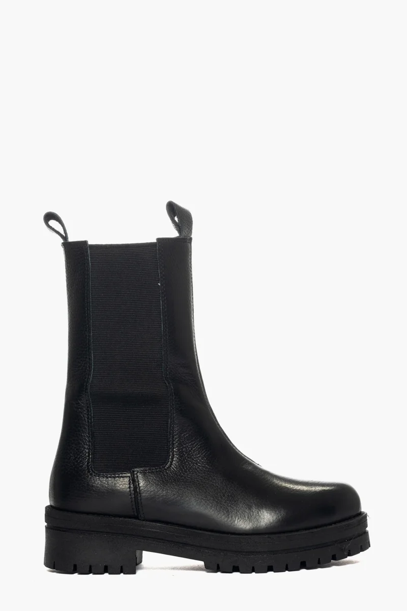 Stivaletti in pelle nero con elastici ai lati in tinta, interni e sottopiede in similpelle, suola in gomma nel color nero, altezza 5 cm. Calzata regolare, taglia italiana. Calzature realizzate in modo artigianale, rigorosamente Made in Italy.
