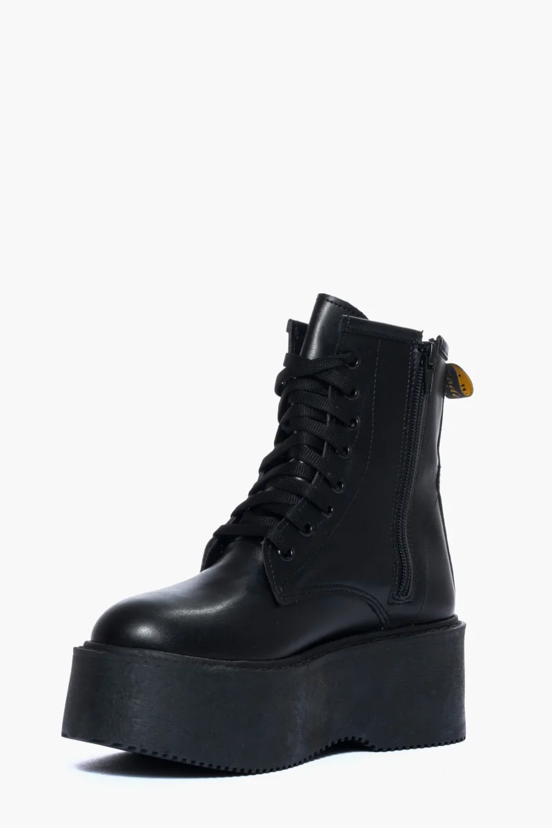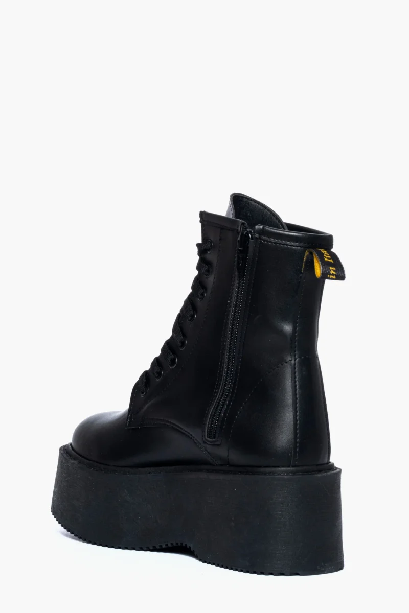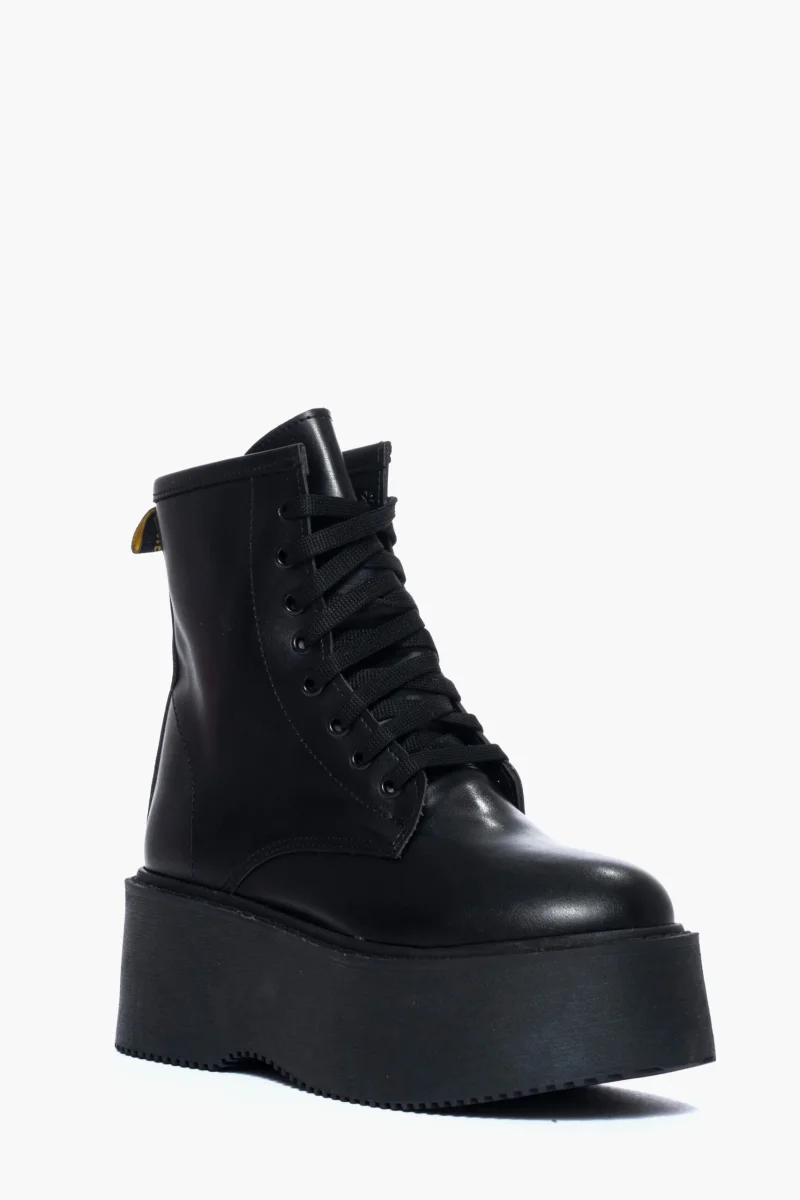 Stivaletti in pelle nero con lacci nel colore nero, suola 7.5. Calzano regolari.