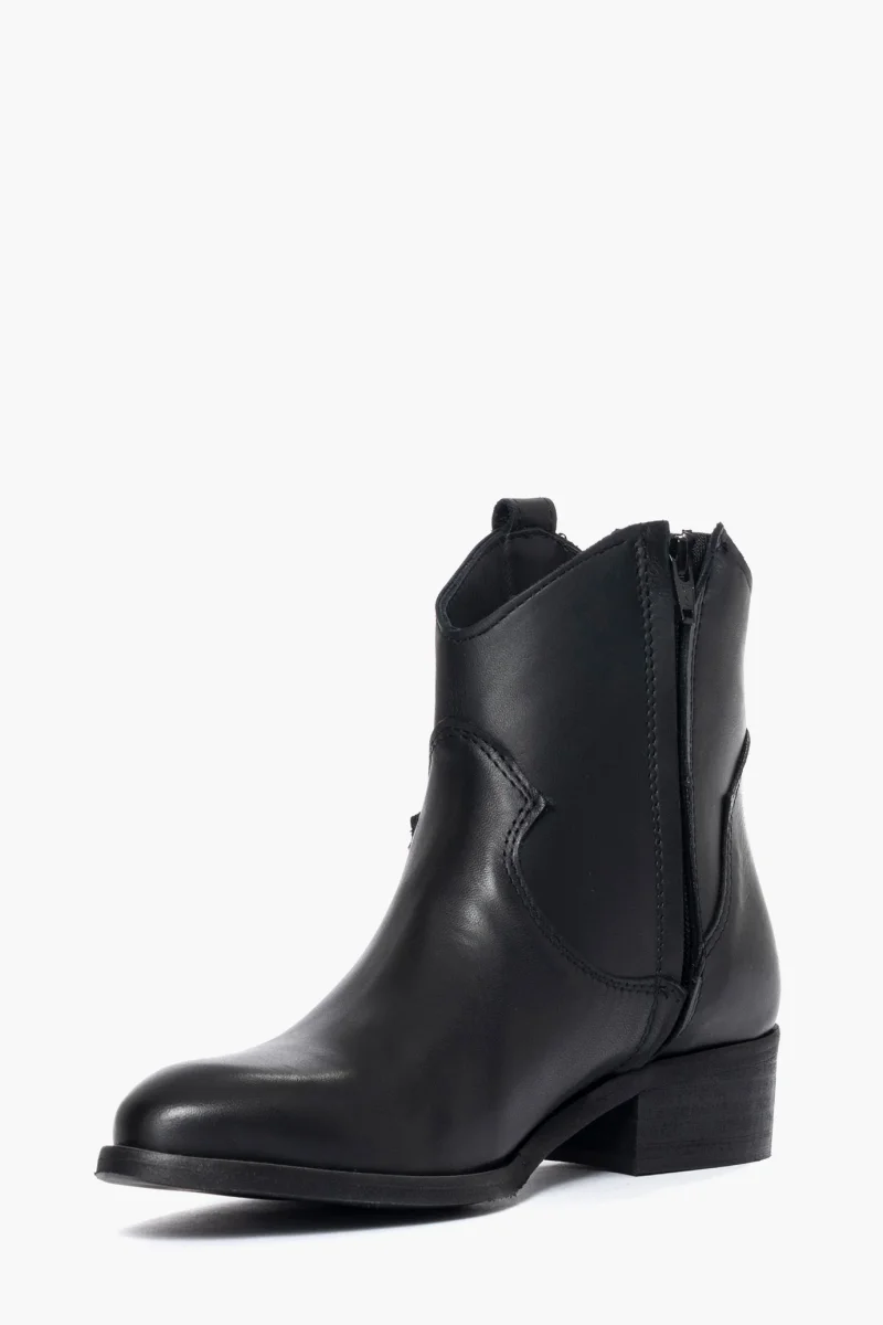 Stivaletti in pelle nero con cerniera interno piede, interni e sottopiede in similpelle, suola in micro nero, altezza tacco 4 cm. Calzata comoda, pianta non stretta, abbastanza larga per un texano classico, taglia italiana. Calzature realizzate artigianalmente, rigorosamente made in Italy.