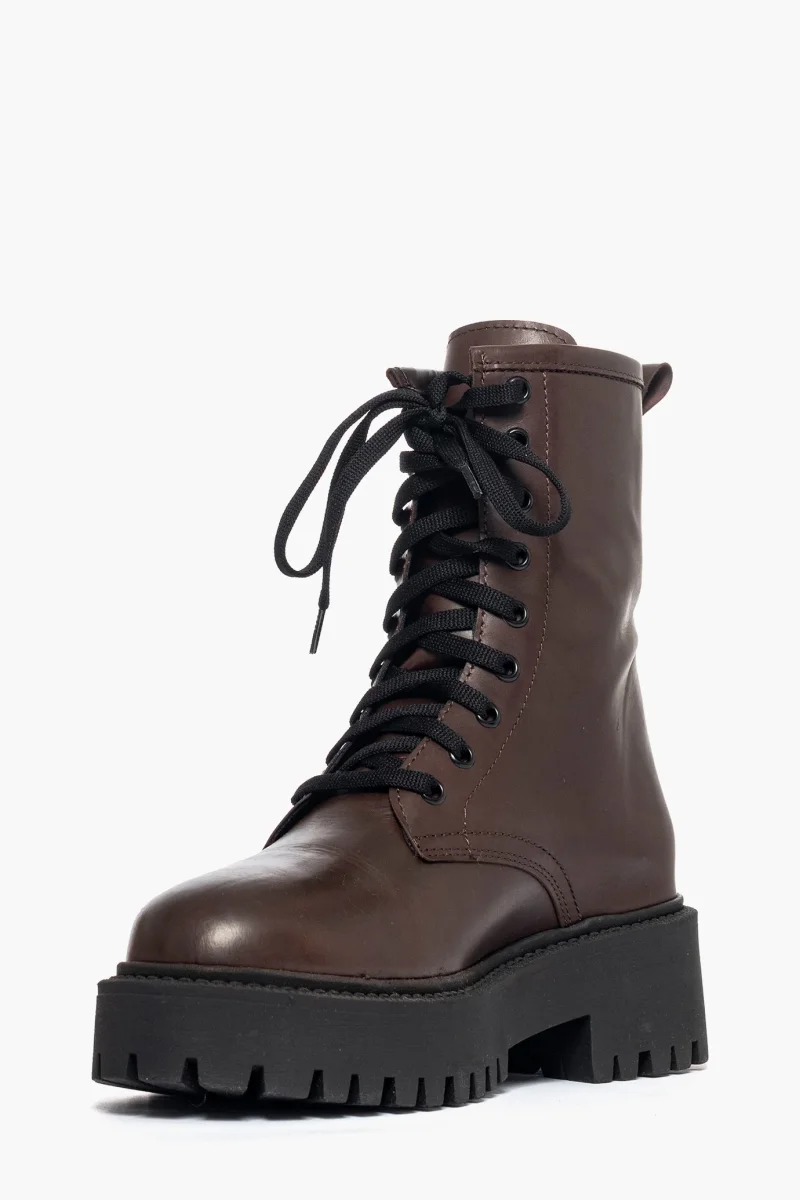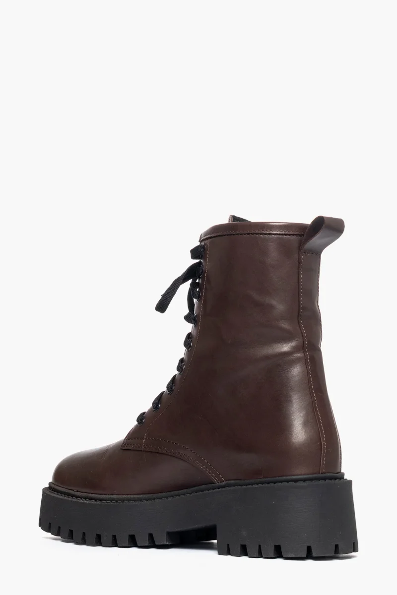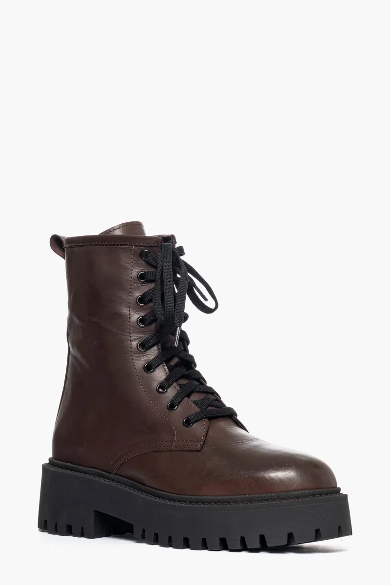 Stivaletti con lacci in pelle testa di moro, interni in similpelle, suola in gomma nera, altezza 5. Calzature artigianali, made in Italy.