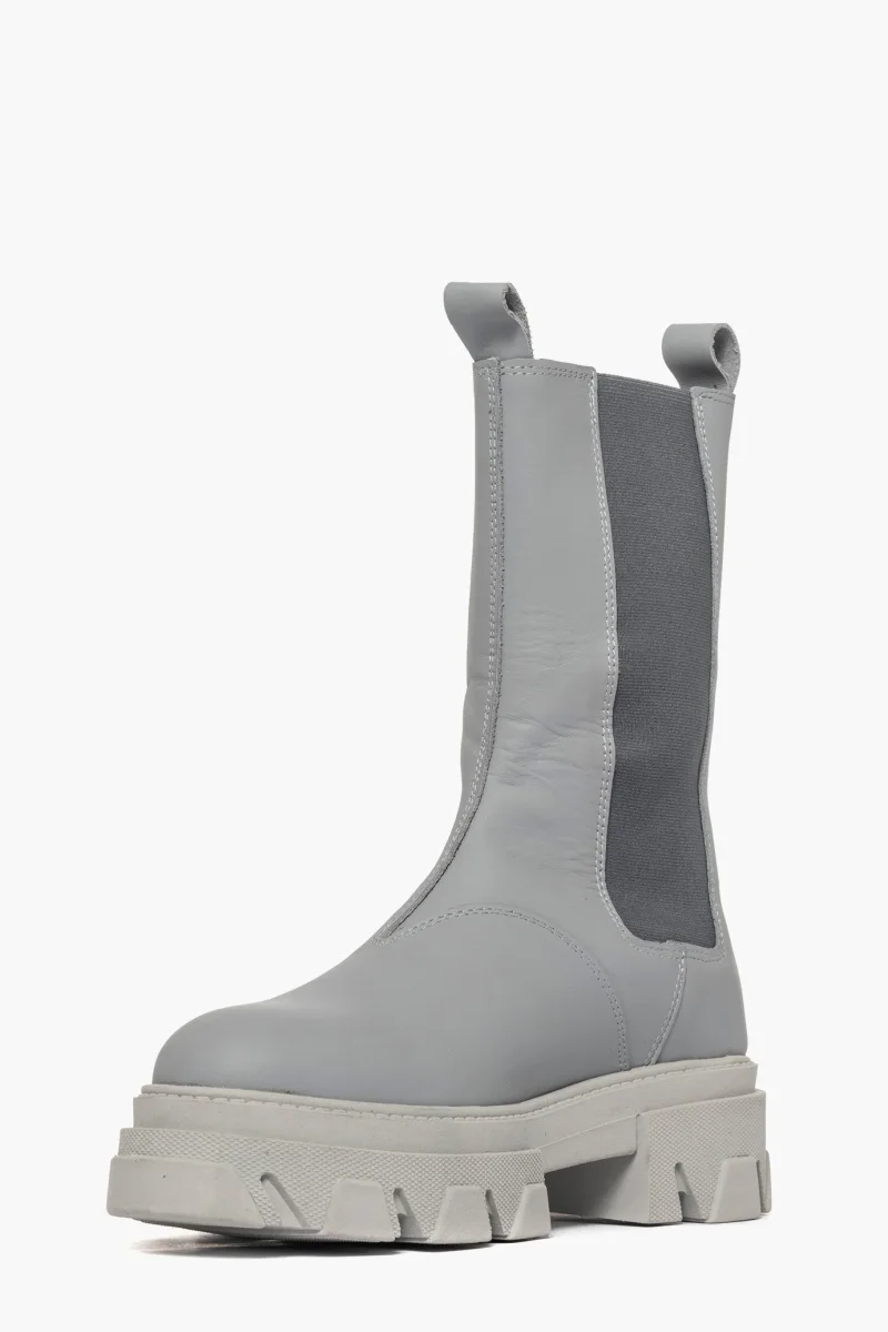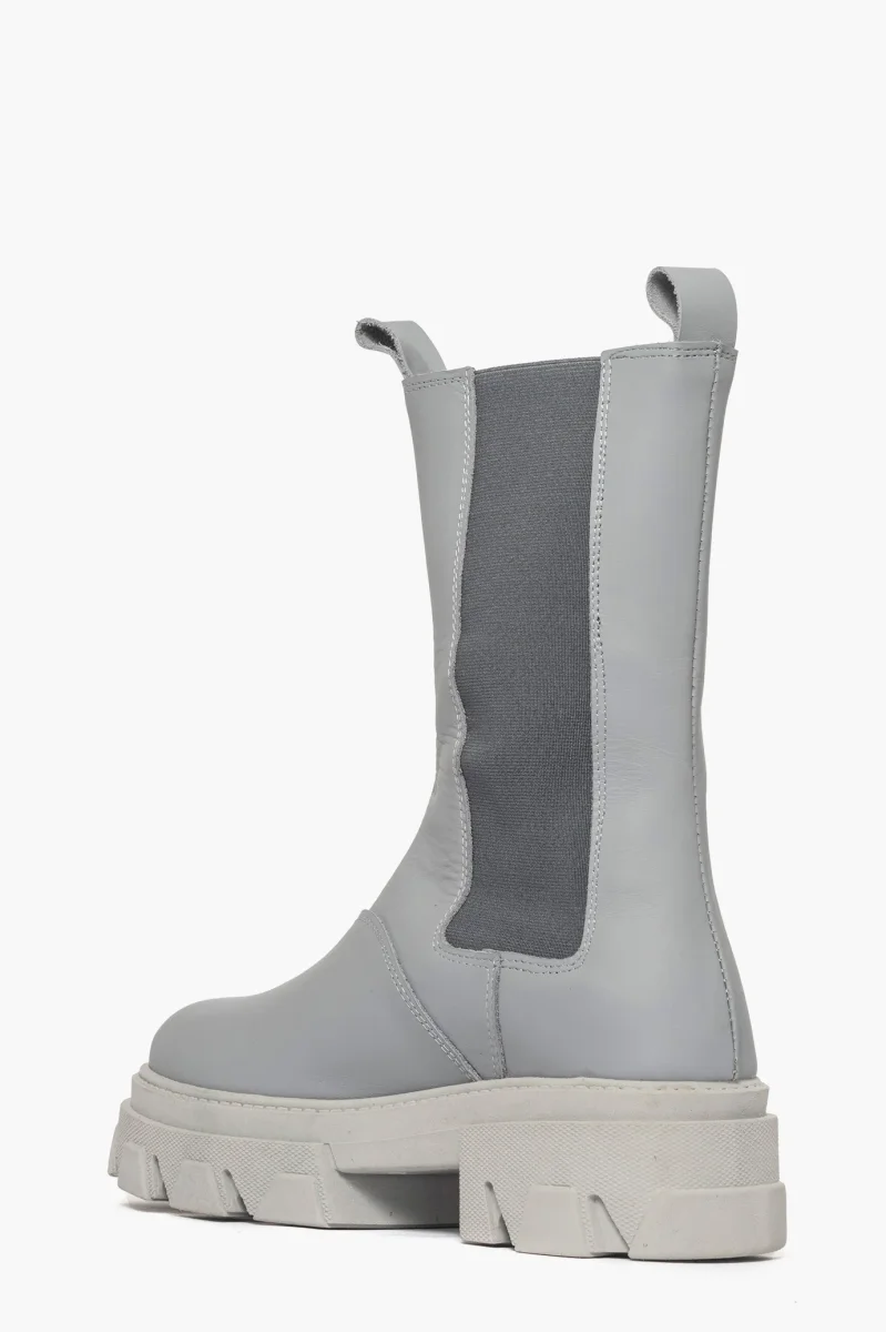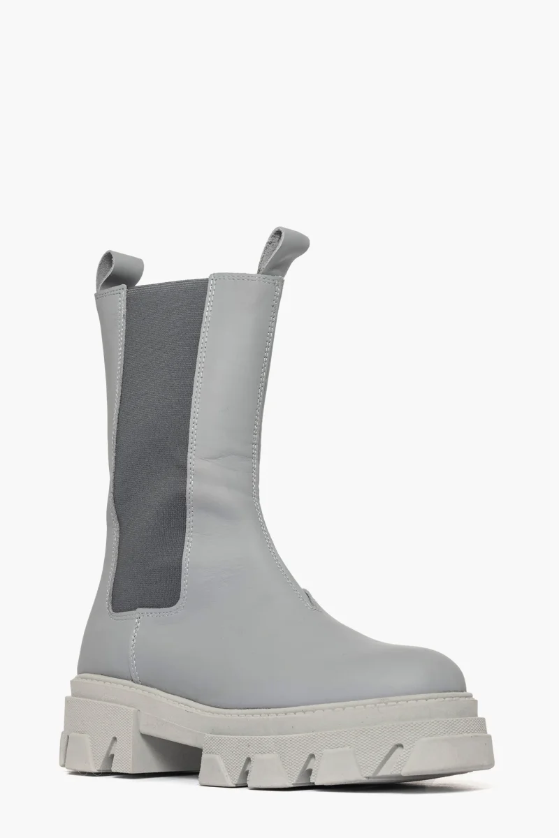 Stivaletti in pelle grigio con elastici ai lati in tinta, interni e sottopiede in similpelle, suola in gomma nel color grigio, altezza 5 cm. Calzata regolare, taglia italiana. Calzature realizzate in modo artigianale, rigorosamente Made in Italy.