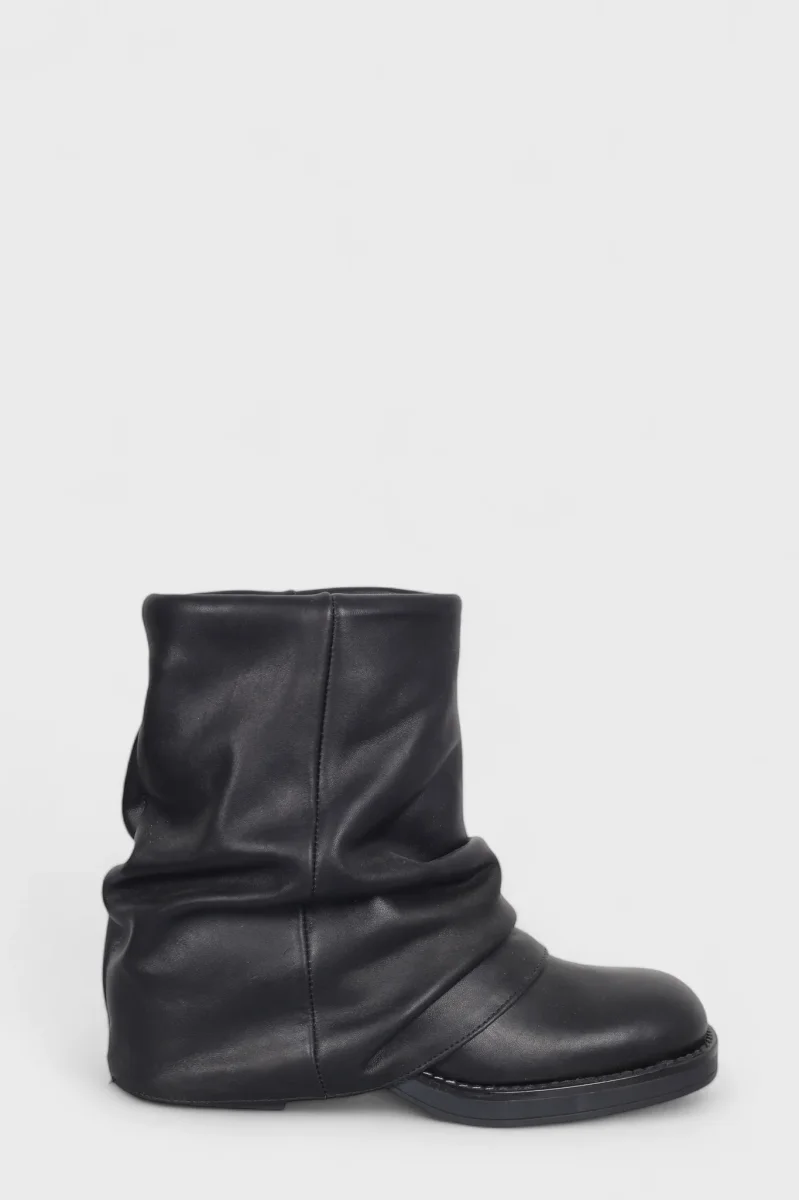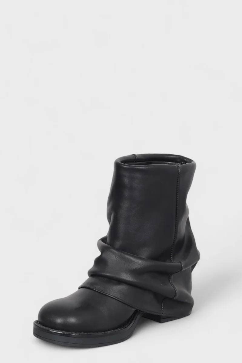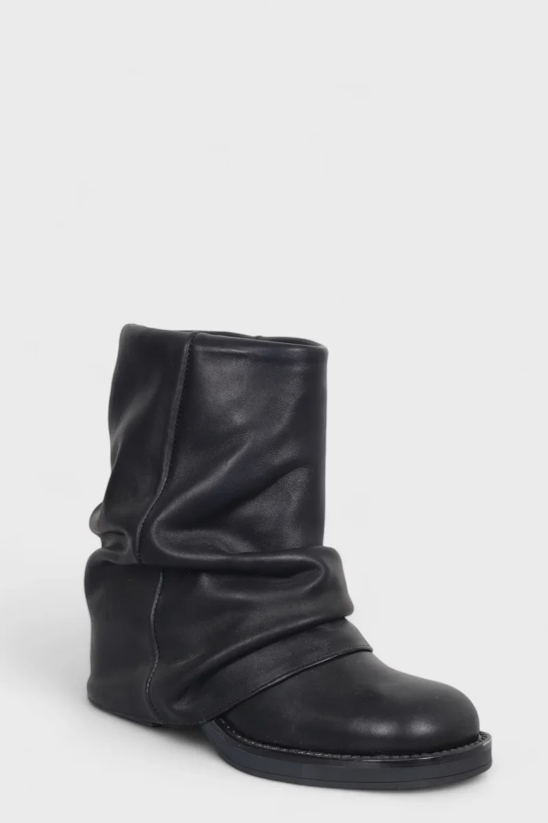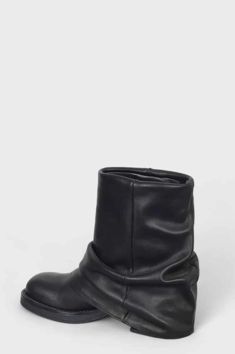 Stivaletto anfibio alla caviglia Megan 1350 in pelle nero con risvolto, con punta quadrata, interni e sottopiede in similpelle, tacco 6 cm suola in tinta. Calzata regolare. Calzature realizzate artigianalmente, rigorosamente Made in Italy.