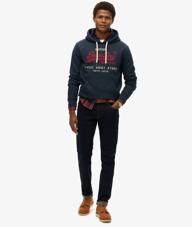 Un classico: la felpa con cappuccio tono su tono Vintage Logo. Comfort e qualità senza eguali: questo must di ogni guardaroba è pensato per un look casual e al tempo stesso sofisticato. Con finiture a costine e fodera spazzolata, l’impareggiabile comfort Superdry è assicurato e ti manterrà al caldo in tutte le stagioni.