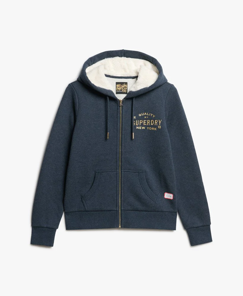 - Fodera spazzolata, logo Superdry stampato ed etichetta con logo Superdry.