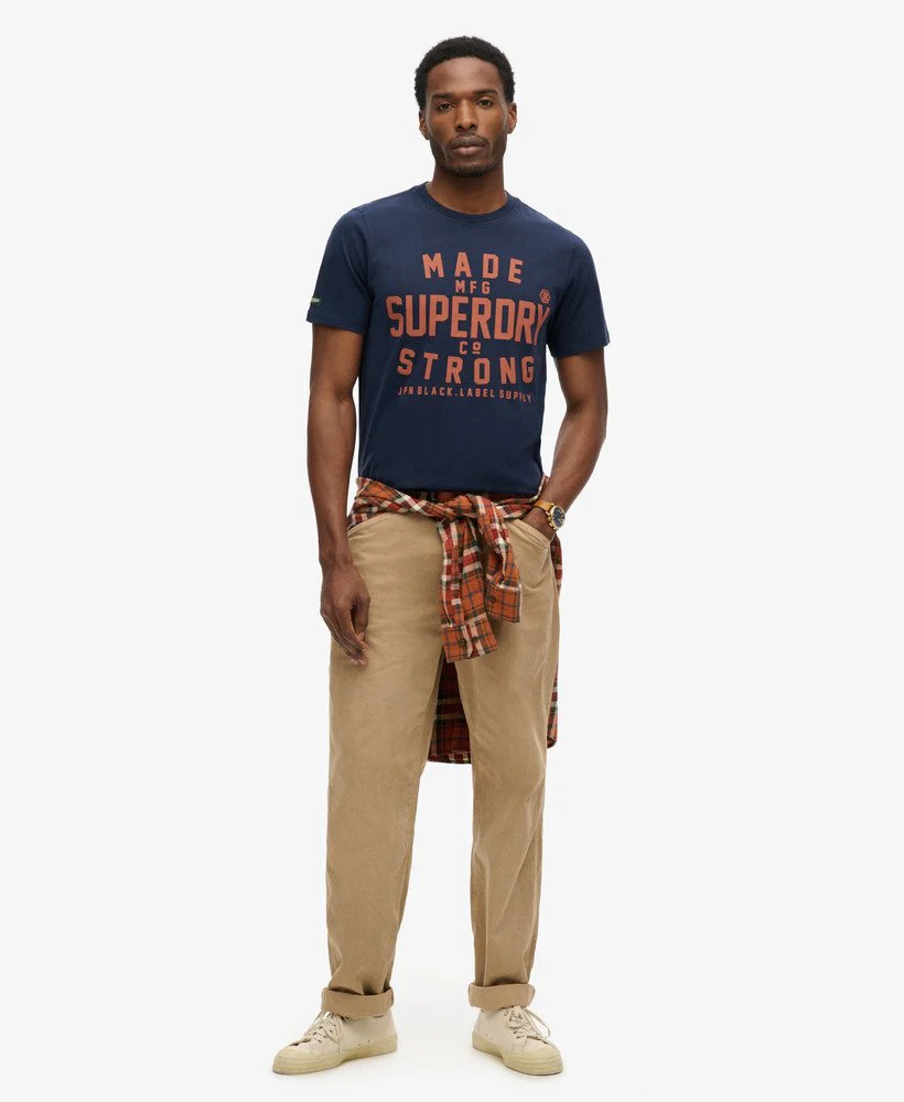 Questa t-shirt è l’incarnazione del classico comfort e della qualità Superdry, morbidissima e perfetta da abbinare a qualsiasi capo del tuo guardaroba. Il logo stampato sul petto della t-shirt “Machined Goods Workwear” ha un fascino rustico, uno stile minimalista e un font semplice per la massima autenticità , che si presta perfettamente ad abbinamenti di stile davvero creativi.