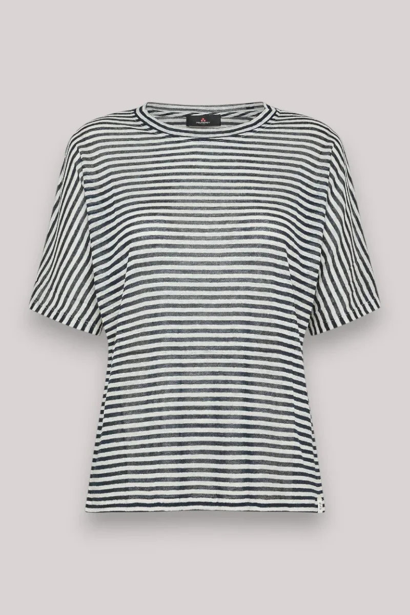 T-shirt donna in lino rigato, perfetta per l’estate con il suo taglio regular fit che garantisce comfort e eleganza. Il bianco naturale si abbina facilmente a qualsiasi outfit, mentre la trama leggera assicura traspirabilità nelle giornate più calde. Un capo versatile e raffinato, ideale per uno stile casual sofisticato che non passa mai di moda.