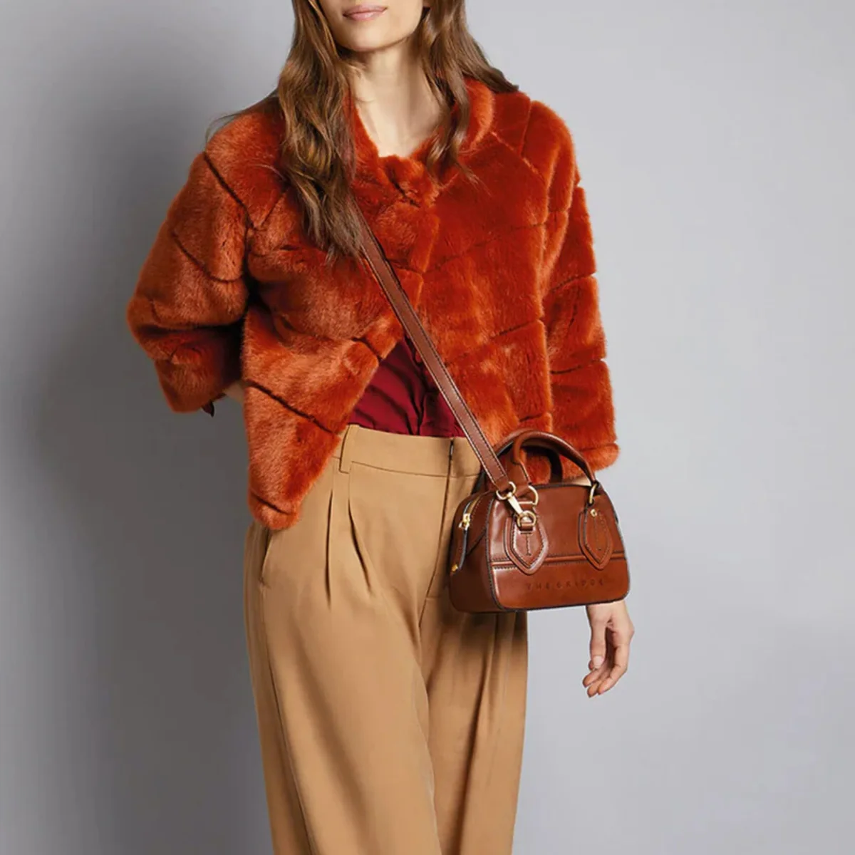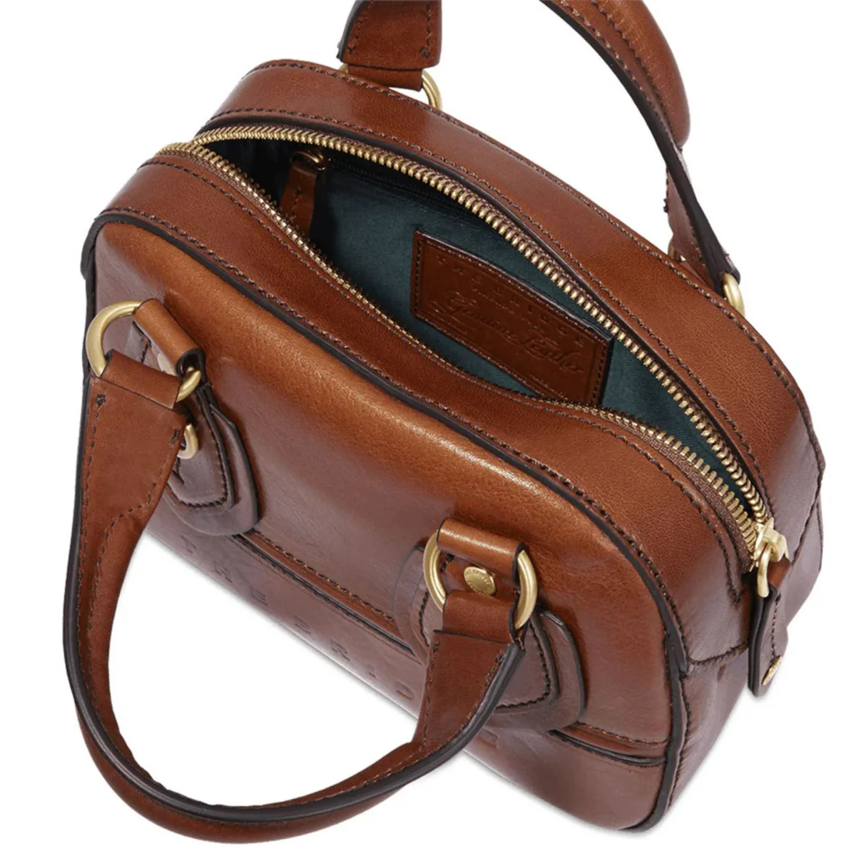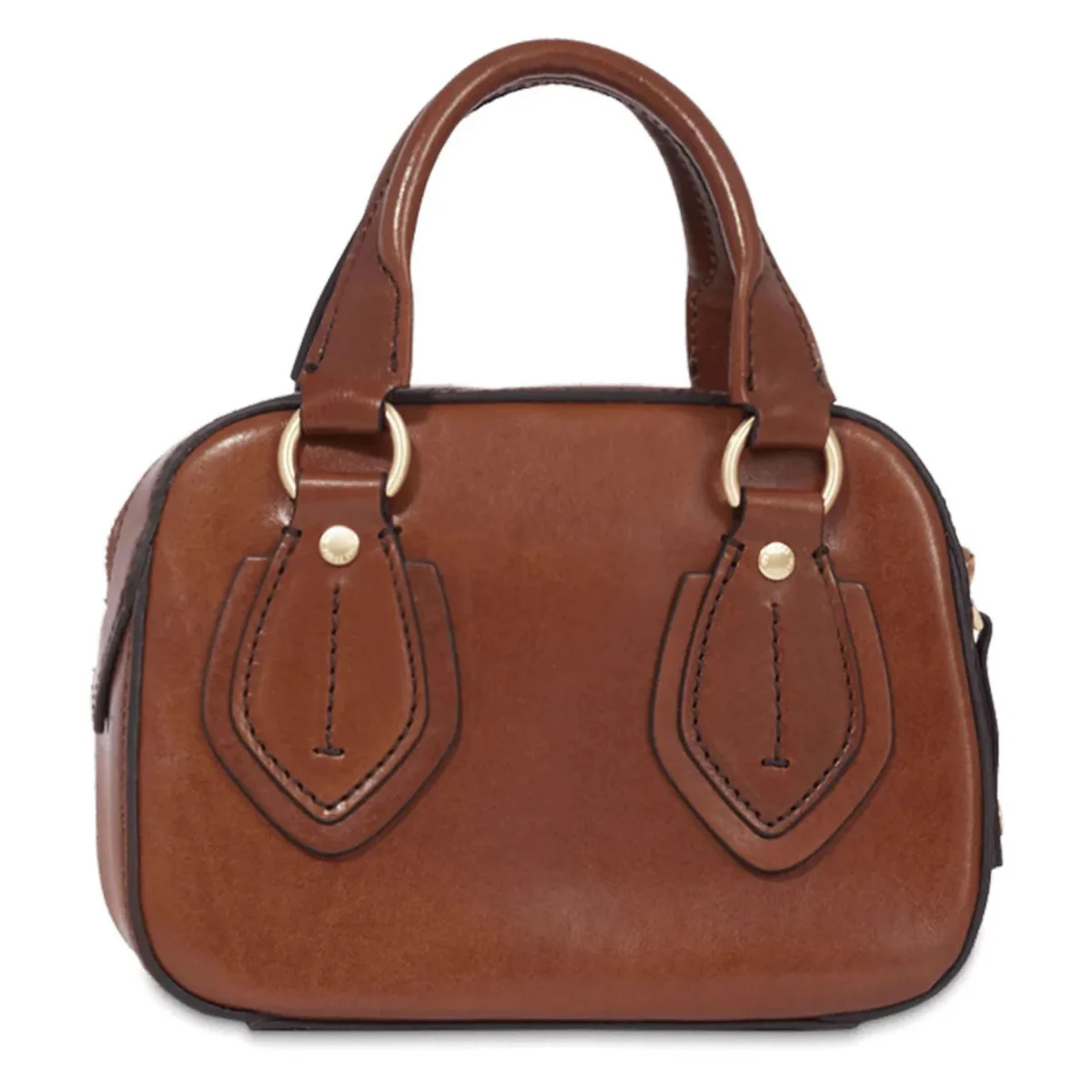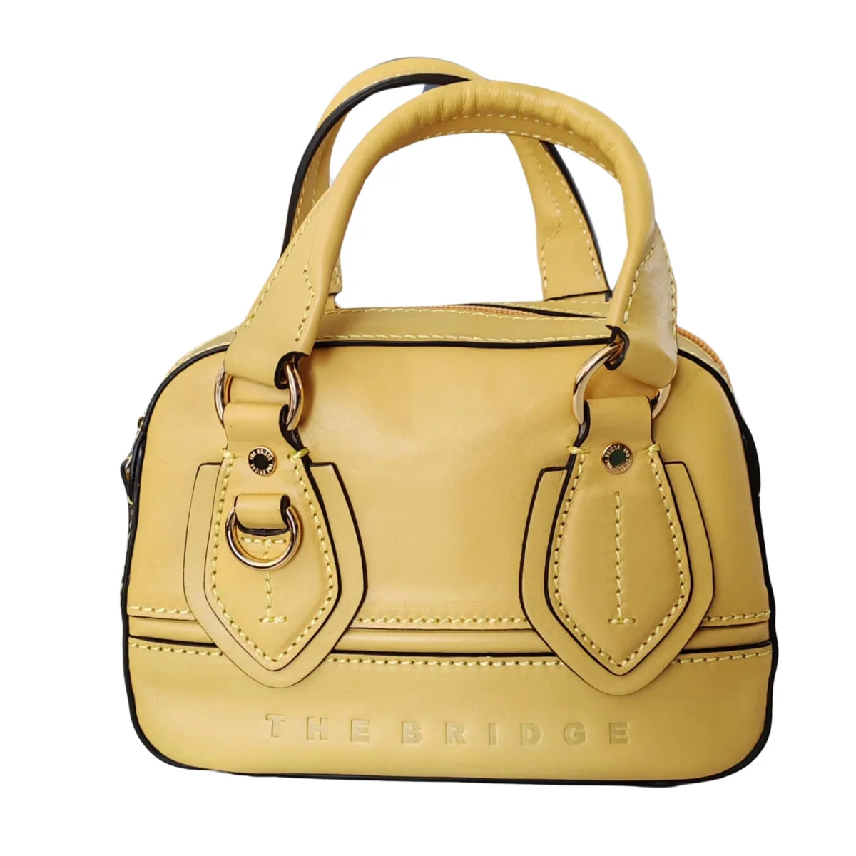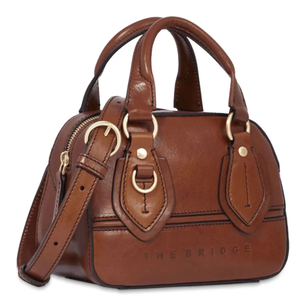 Borsetta a mano The Bridge in pelle, stile bowling versione mini con doppio manico superiore, chiusura lampo completa, tracolla sottile removibile per trasporto cross-body.