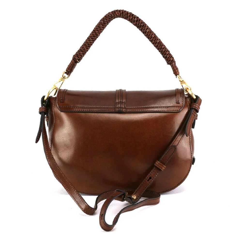 Borsa donna a spalla realizzata in cuoio conciato al vegetale. All’interno tasche per riporre piccoli oggetti. Eventuali piccole imperfezioni o disomogeneità di colore non sono da considerarsi un difetto ma caratteristica naturale del pellame. La borsa viene venduta con etichette e imballo originali.