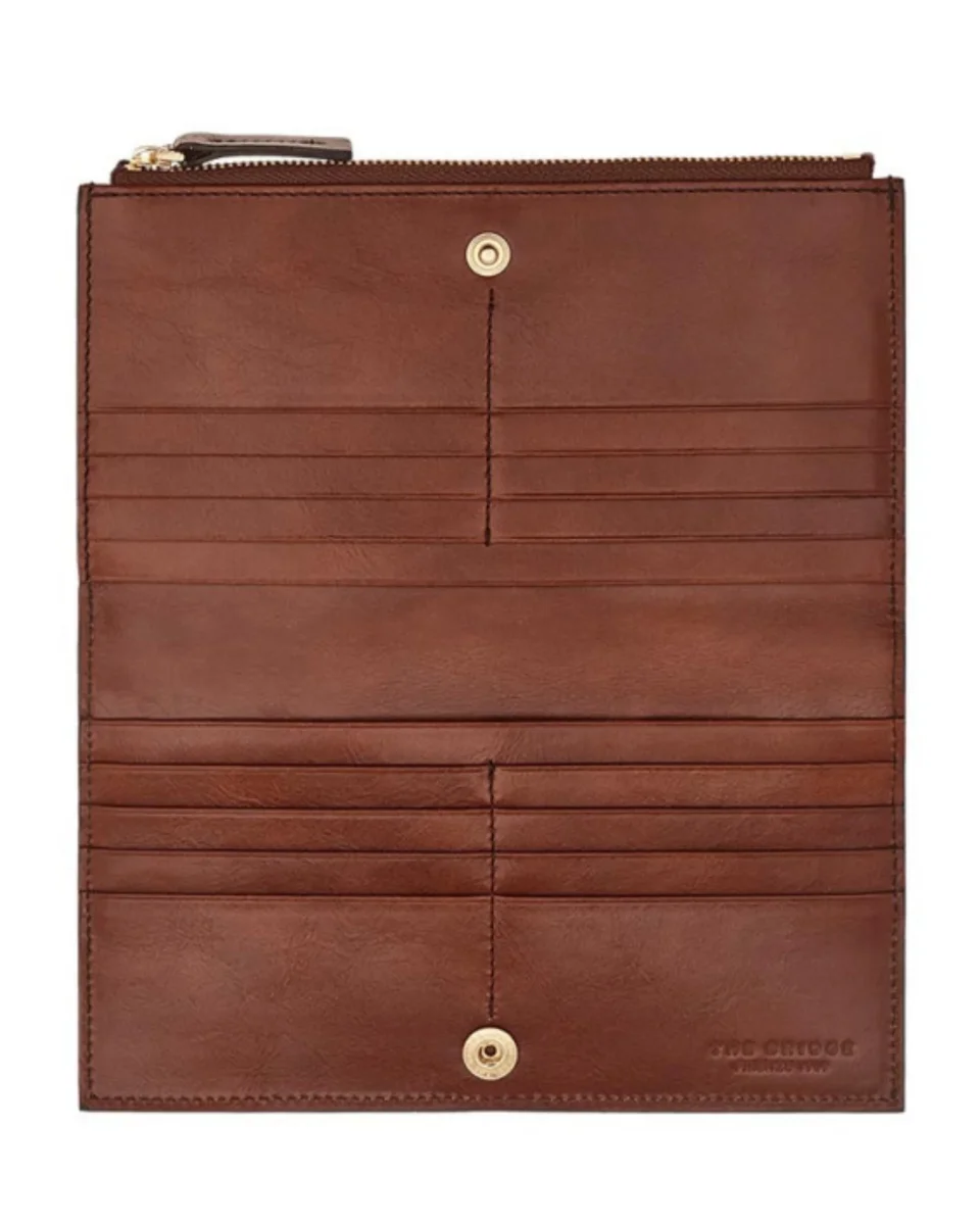 Portafoglio per donna The Bridge della Linea Matilde, realizzato interamente in pelle con dettagli in colore oro, dotato di portamonete e slot portacarte.