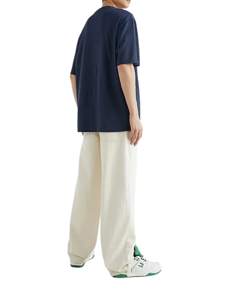 Arricchisci i tuoi outfit casual con la T-shirt in puro cotone, decorata dal distintivo di grande impatto e dal dettaglio con righe a contrasto sul petto.