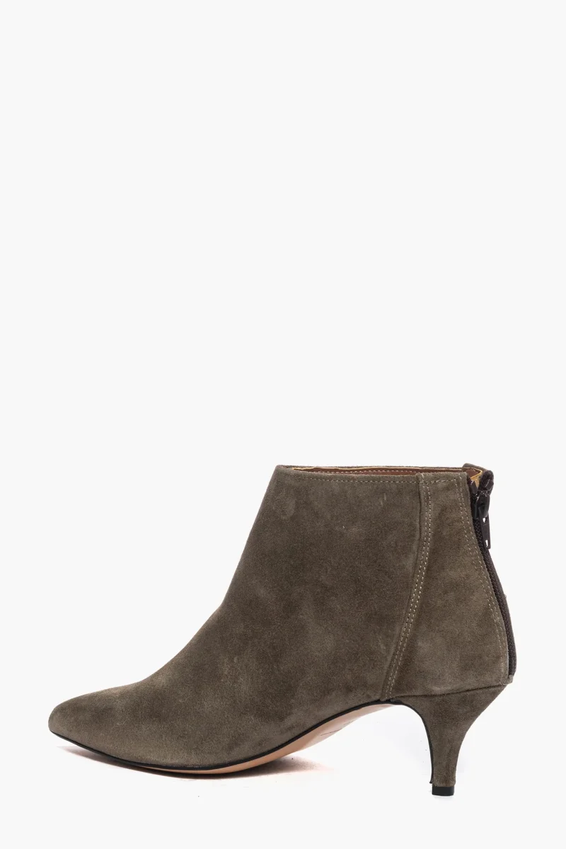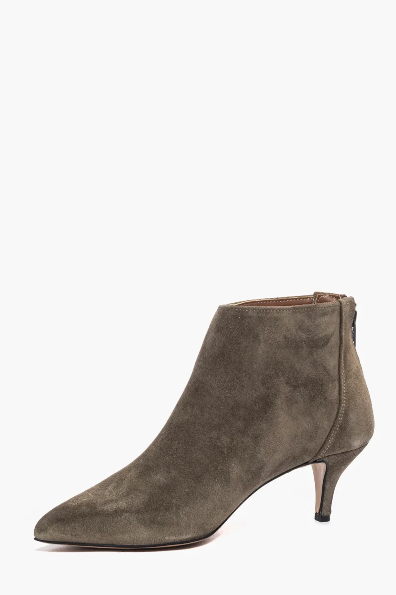 Tronchetti in camoscio verde scuro, tacco rivestito in camoscio verde scuro, altezza 6, cerniera nella parte posteriore, li rende più accollati alla caviglia, spazzolato, interni e sottopiede in similpelle. Calzano giusti, punta stretta. Calzature realizzate in modo artigianale, rigorosamente Made in Italy.