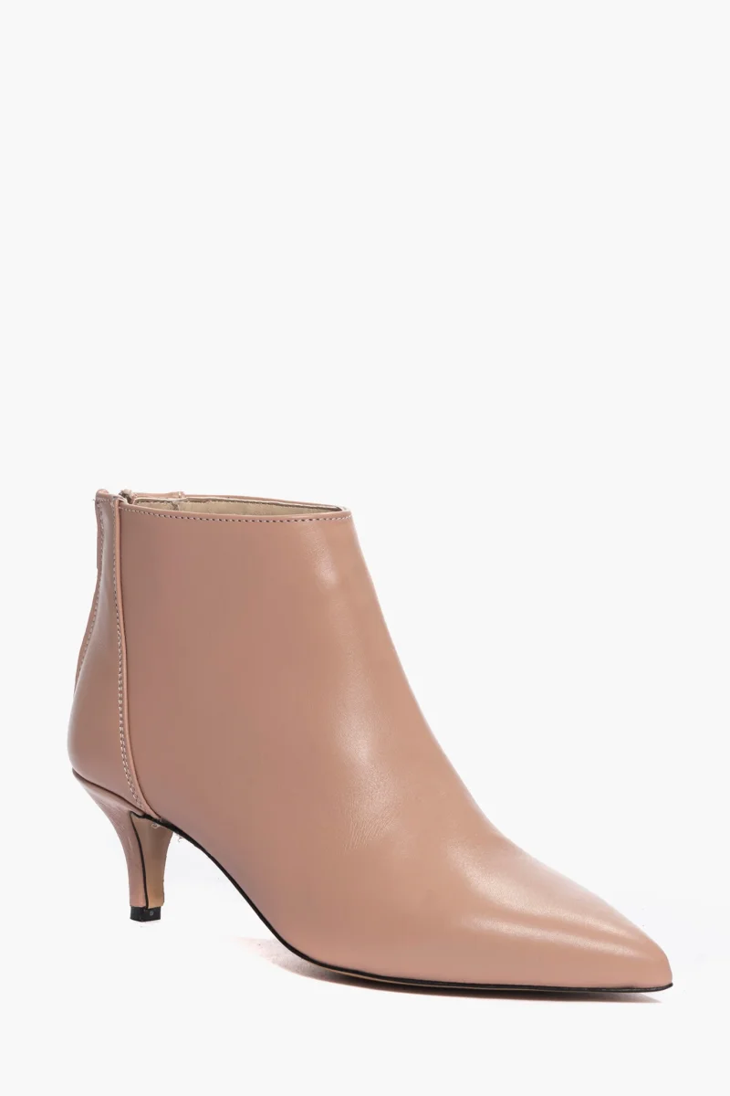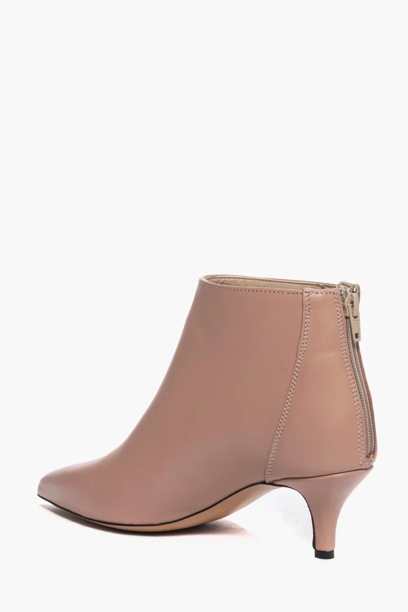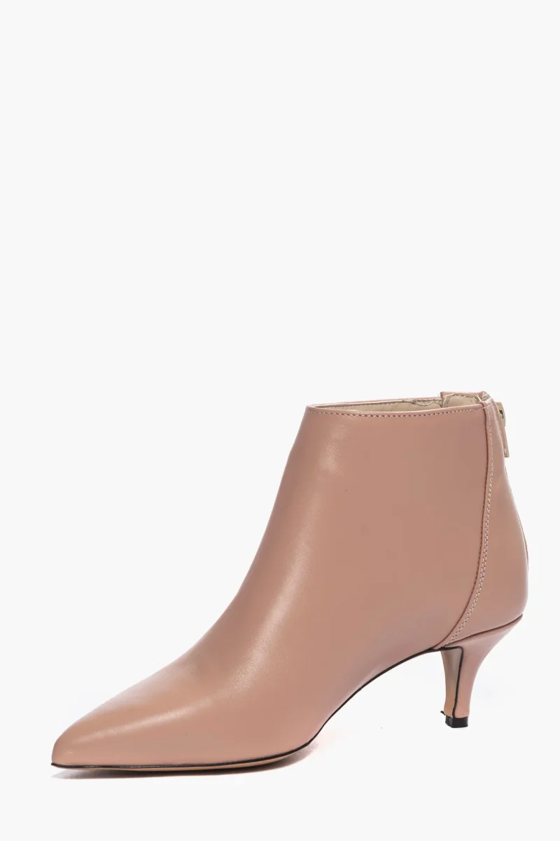 Tronchetti in pelle rosa pallido, tacco rivestito in pelle rosa, altezza 6, cerniera nella parte posteriore, li rende più accollati alla caviglia, spazzolato, interni e sottopiede in similpelle. Calzano giusti, punta stretta. Calzature realizzate in modo artigianale, rigorosamente Made in Italy.
