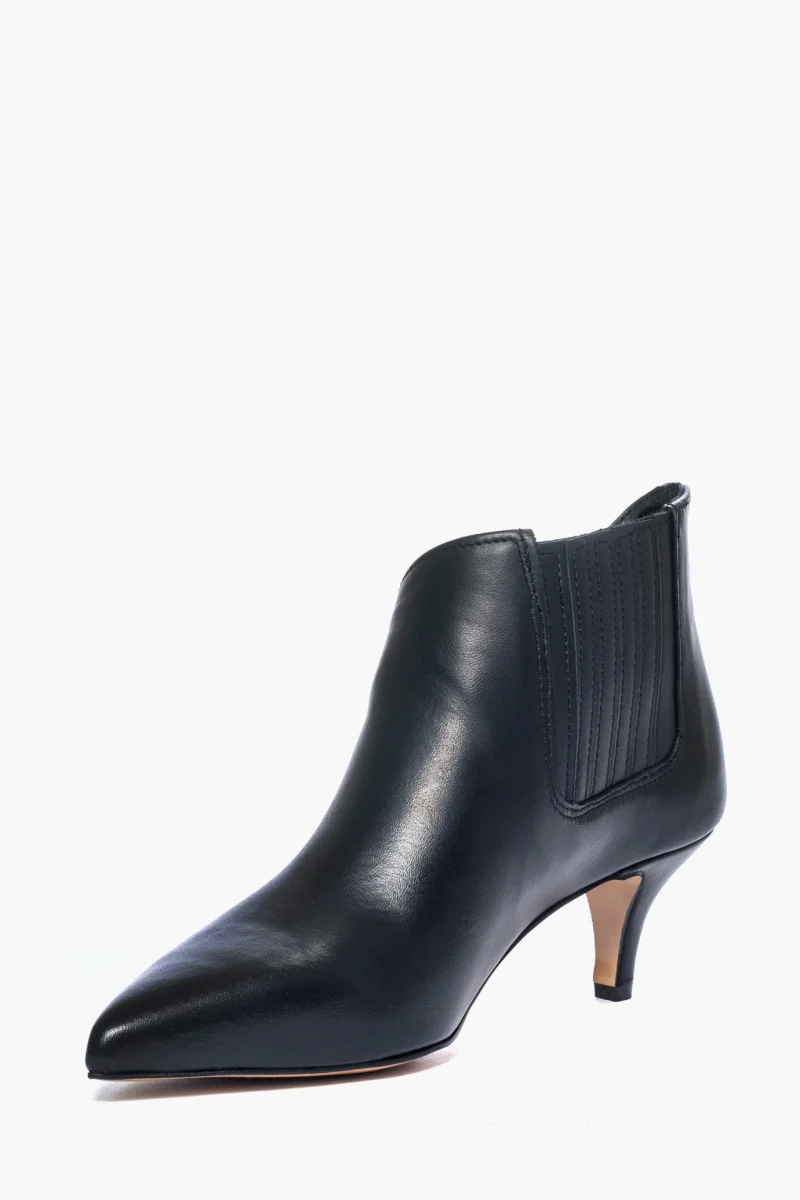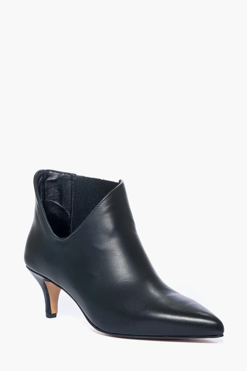 Tronchetti in pelle nero, tacco 6 cm rivestito in pelle, privo di cerniera in quanto vi è l’elastico per consentire un’entrata più veloce e comoda, oltre ad essere una caratteristica del tronchetto, spazzolato, interni e sottopiede in similpelle. Calzata giusta, punta stretta. Calzature realizzate in modo artigianale, rigorosamente Made in Italy.