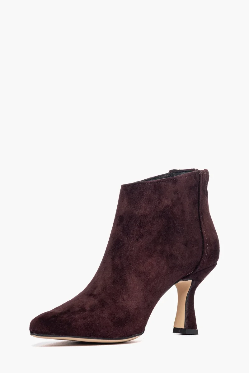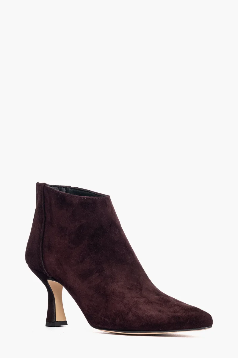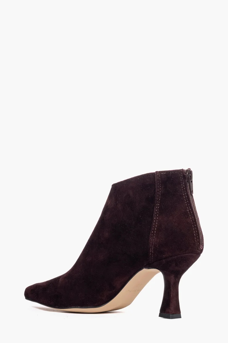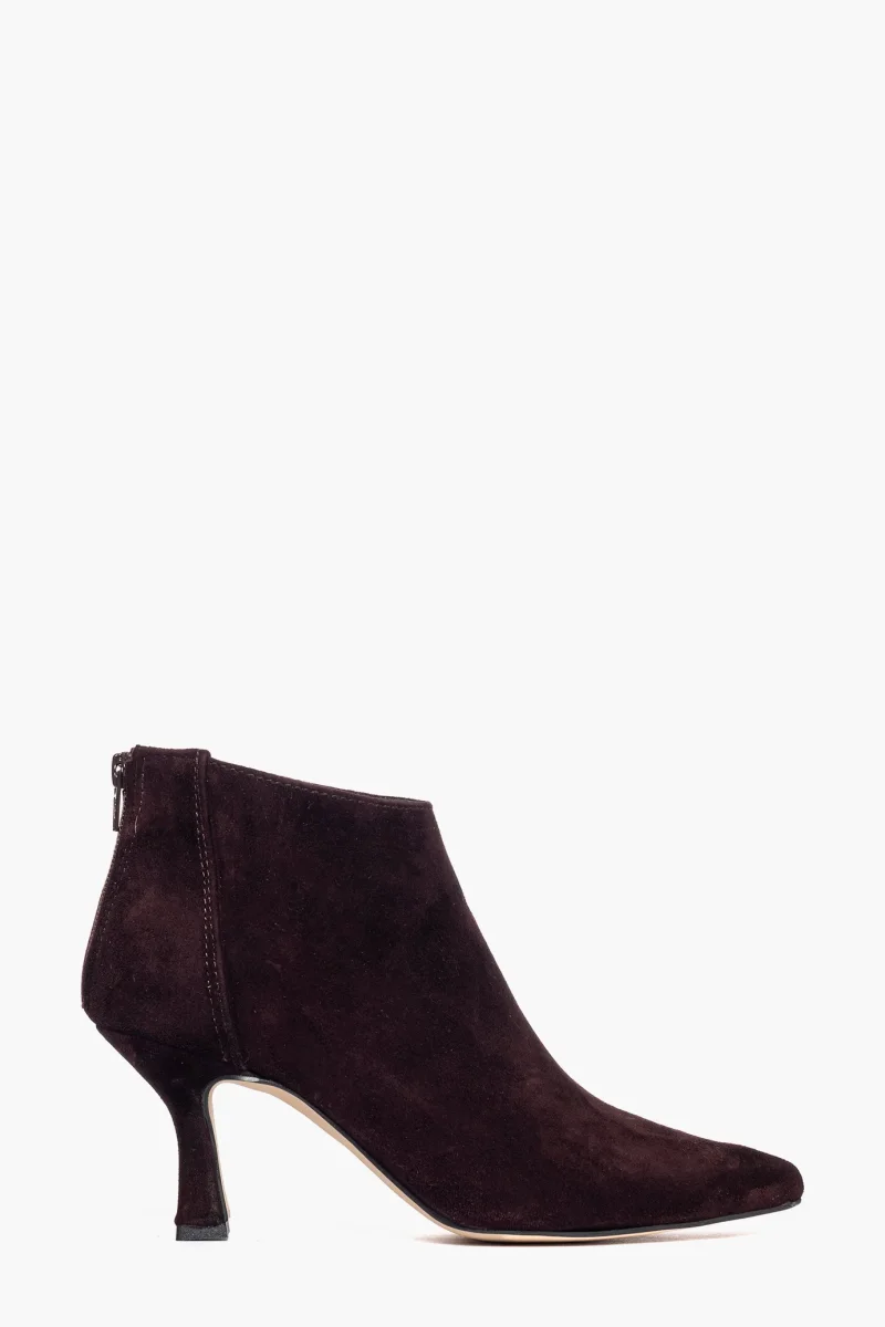 Tronchetti in camoscio borgogna con zip, interni e sottopiede in similpelle, tacco rivestito, altezza 8 cm. Calzata regolare, punta leggermente stretta in avanti. Calzature realizzate in modo artigianale, rigorosamente Made in Italy.