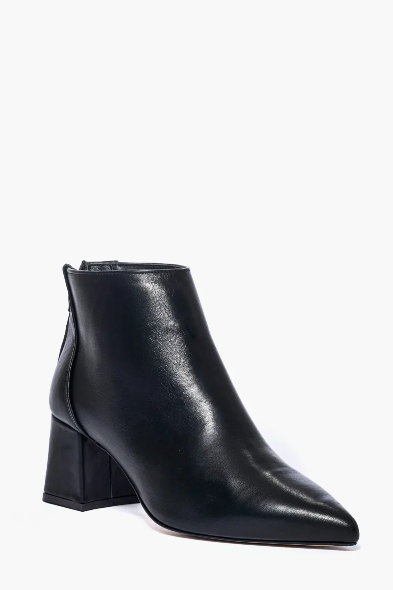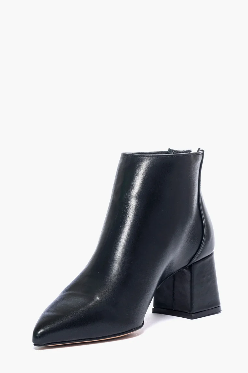 Tronchetti in pelle nera, tacco 6 cm rivestito in pelle, cerniera nella parte posteriore, spazzolato, interni e sottopiede in similpelle. Calzano giusti, taglia italiana, punta stretta. Calzature realizzate in modo artigianale, rigorosamente Made in Italy.