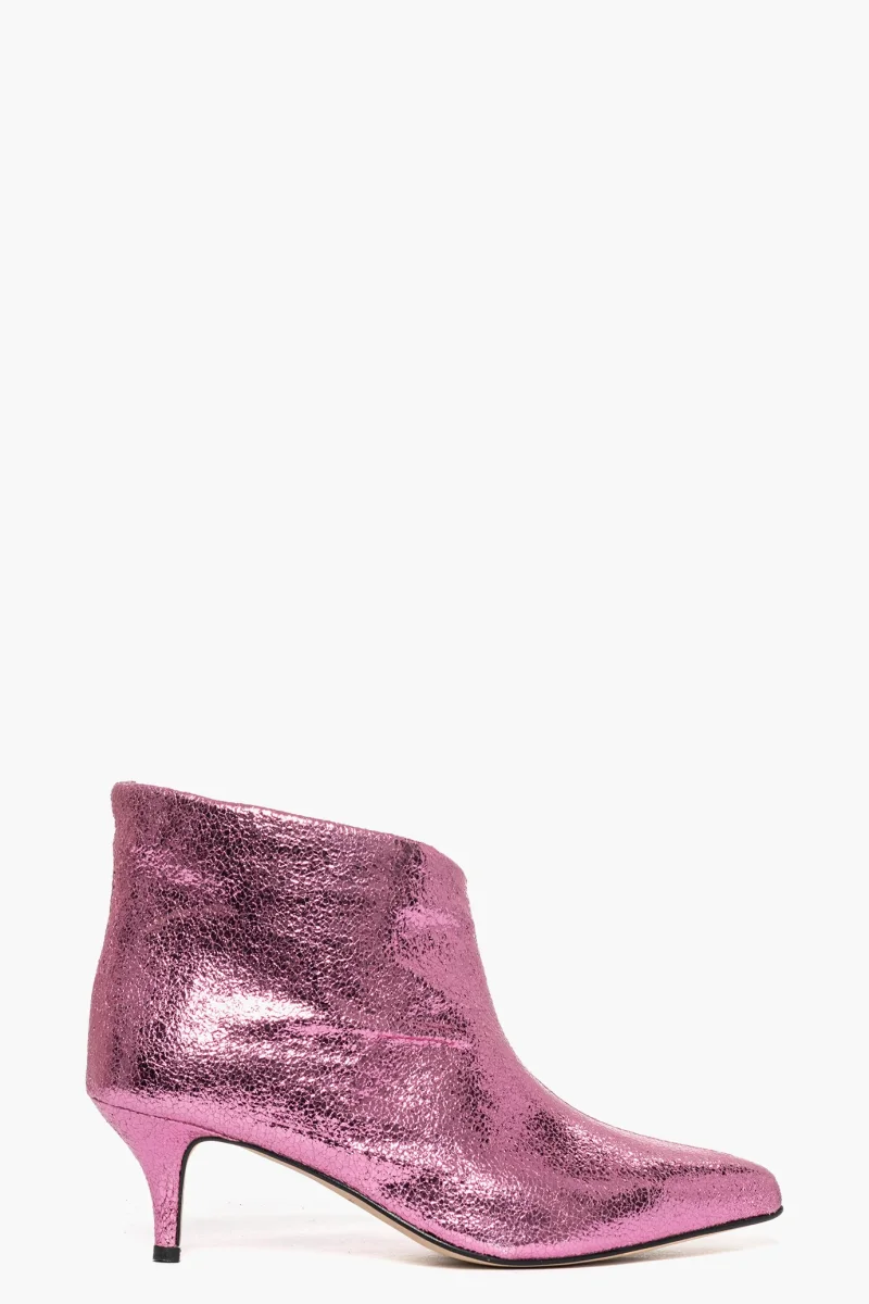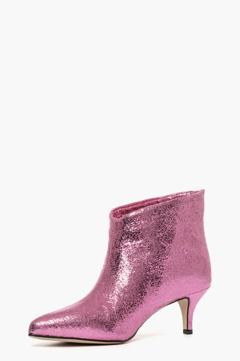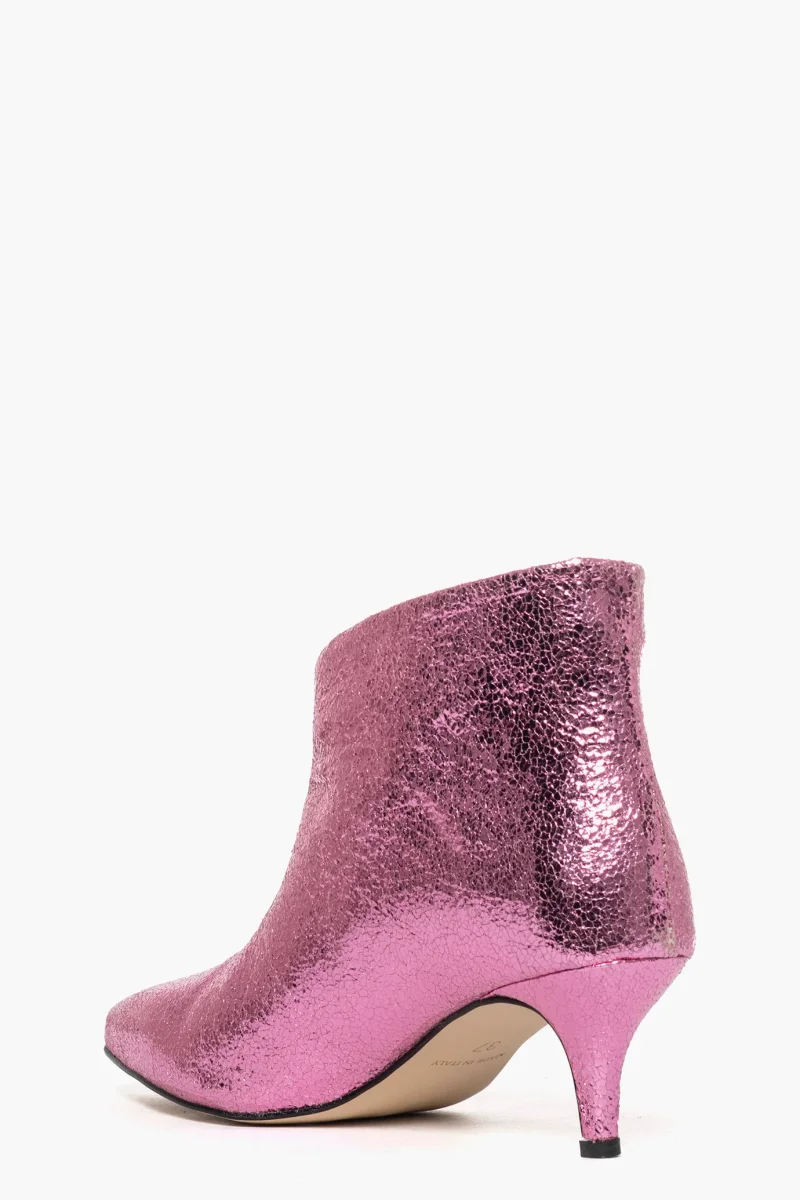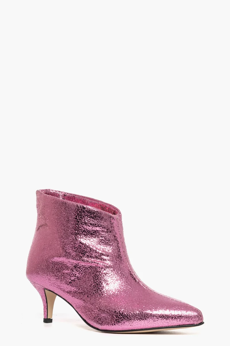 Tronchetto in vipera semilucida fucsia, tacco rivestito, interni in similpelle, altezza 6, arrivano alla caviglia, hanno un taglio largo. Calzano regolari, realizzate in modo artigianale, rigorosamente made in Italy.