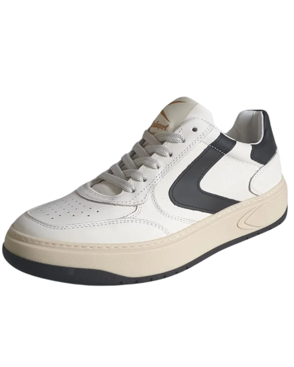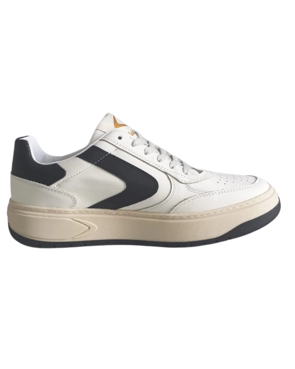 Nuova sneaker Valsport 1920 Hype realizzata in pelle di colore bianco, boomerang e dettaglio tallone in pelle di colore nero. Suola a cassetta cucita effetto vintage. Suoletta interna in pelle, estraibile. Made in Italy.