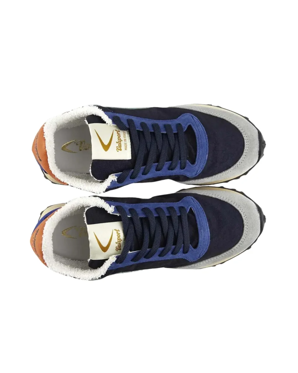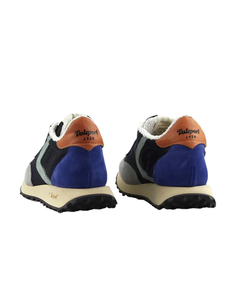 Scarpa da uomo Valsport con tomaia in suede e nylon effetto vintage, con boomerang caratteristico e dettaglio sul tacco con colorazioni a contrasto.