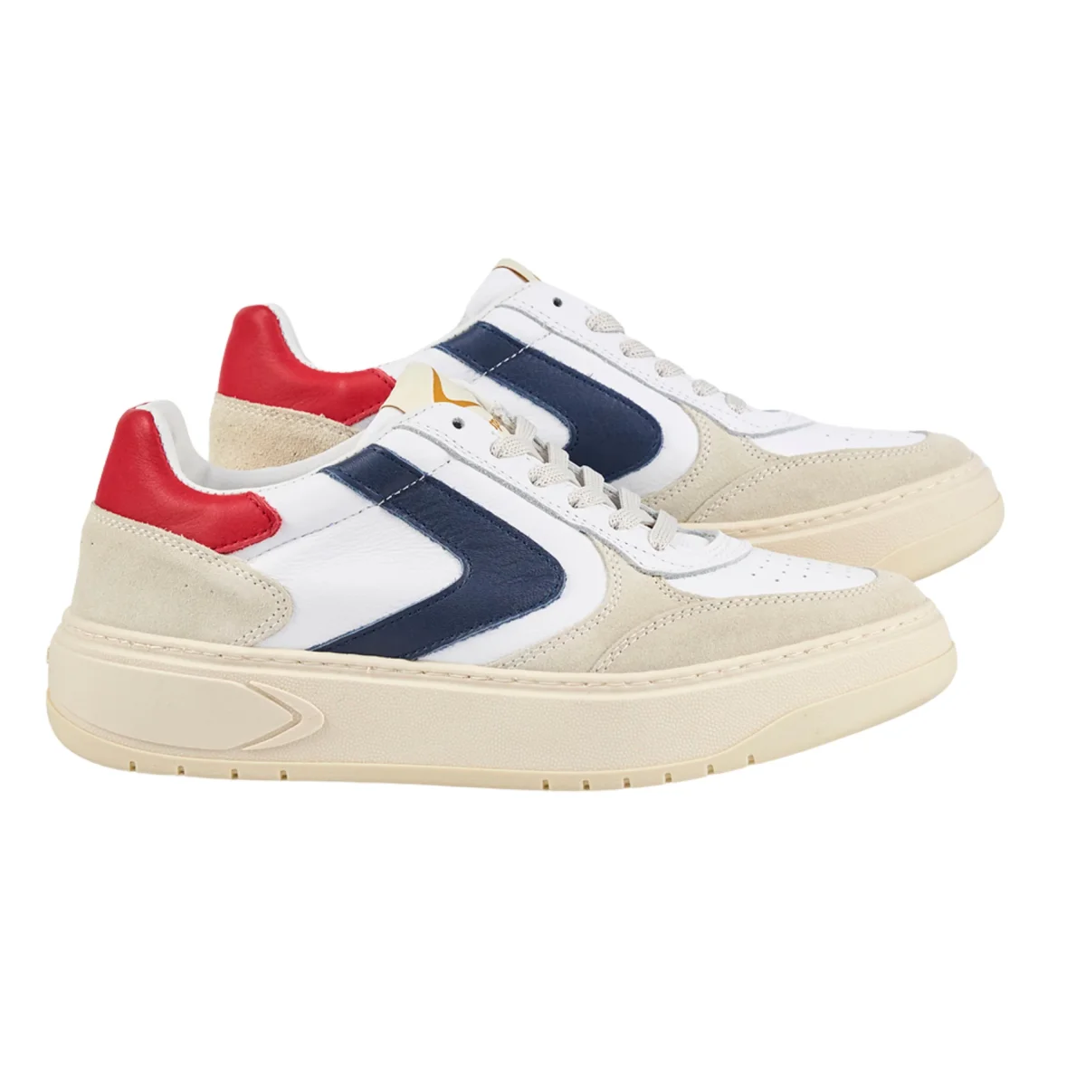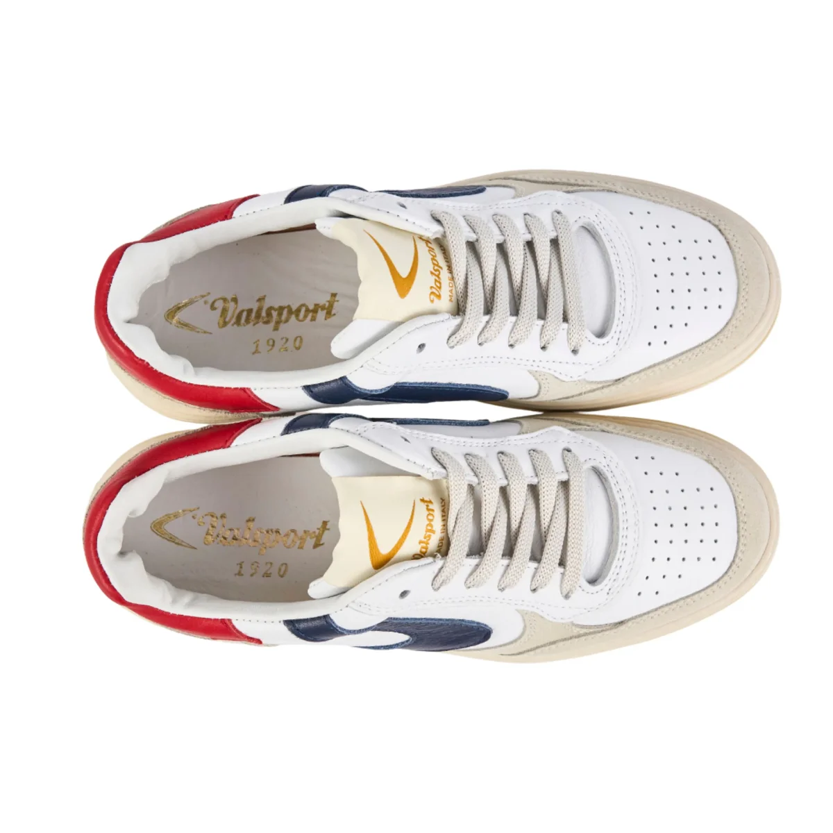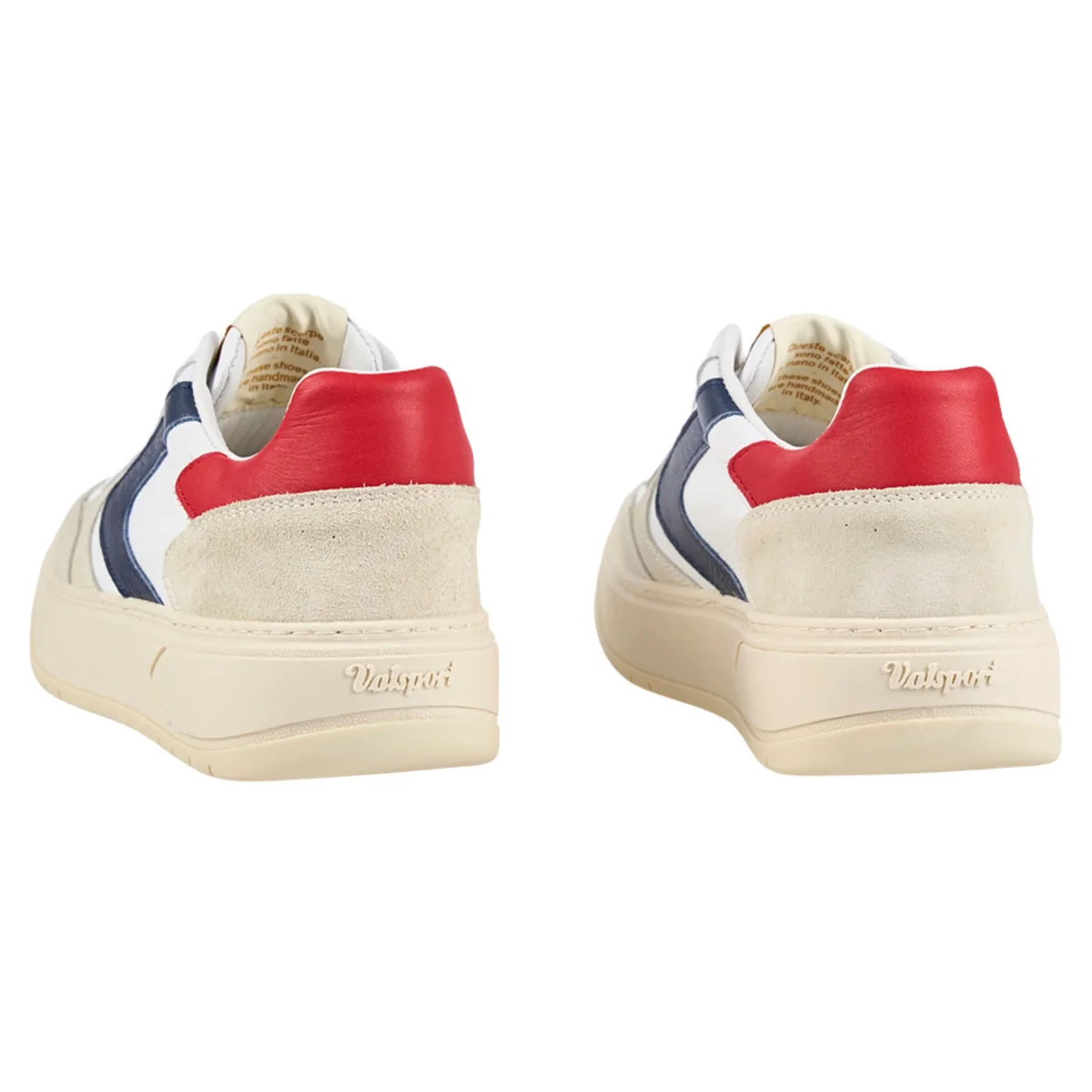 Nuova sneaker Valsport 1920 Hype realizzata in pelle di colore bianco, boomerang e dettaglio tallone in pelle di colore blu.