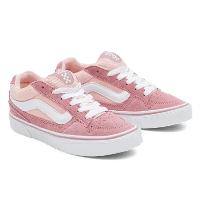 Sneakers da donna Vans Caldrone in pelle scamosciata e tessuto mesh colore rosa, dettagli traforati, lacci bianchi e logo laterale, sulla linguetta e sul tallone.