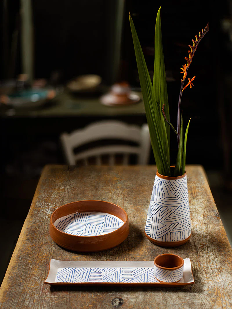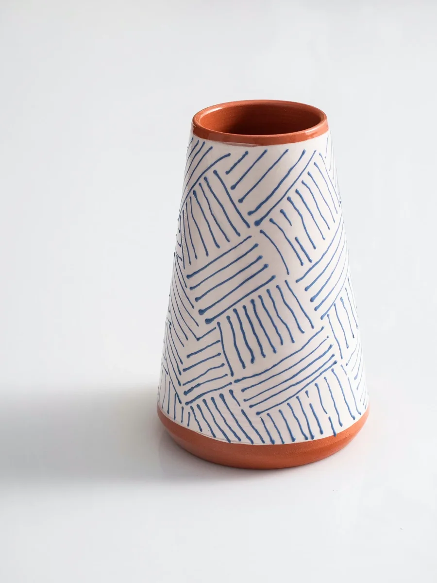 Il vaso alto ceramica della collezione “LINES” può essere utilizzato come vaso per fiori o porta mestoli da cucina. La collezione si caratterizza dalla decorazione con linee dipinte a mano e il contrasto del colore rosso della terracotta. Un design particolare, per un servizio da tavola impeccabile, colorato, vivace e moderno. Crea il set completo in ceramica greca con il servizio di piatti Terracotta rotondi, il set Leaf, i vassoi, le ciotoline, saliera e pepiera coordinate.