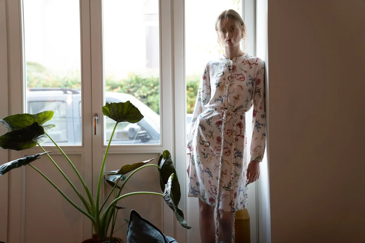 L’abito camicia assoluto. Antheia è un abito al ginocchio, realizzato in 100% viscosa rayon leggera e setosa, ed è un capo indispensabile per l’estate, in tessuto liscio e arioso e impreziosito da una cintura intrecciata. L’abito arriva sopra al ginocchio e ha maniche lunghe la stampa personalizzata è progettata e illustrata a mano in esclusiva per Klotho con una fusione di simboli popolari come il pavone, i fiori, i serpenti e le capre che dovrebbero offrire felicità e buona fortuna secondo la tradizione. Illustrato a mano dall’artista e illustratrice Zeta Papadopoulou. Abbina questo vestito chemisier corto a un paio di sandali piani per il tuo look chic da giorno o a un paio di tacchi per un look estivo da sera. Antheia è uno dei nostri abiti più venduti per l’estate del 21. La modella che indossa l’abito è alta 1,80m e indossa la taglia S. Prodotto in Grecia. Vestibilità regolare.