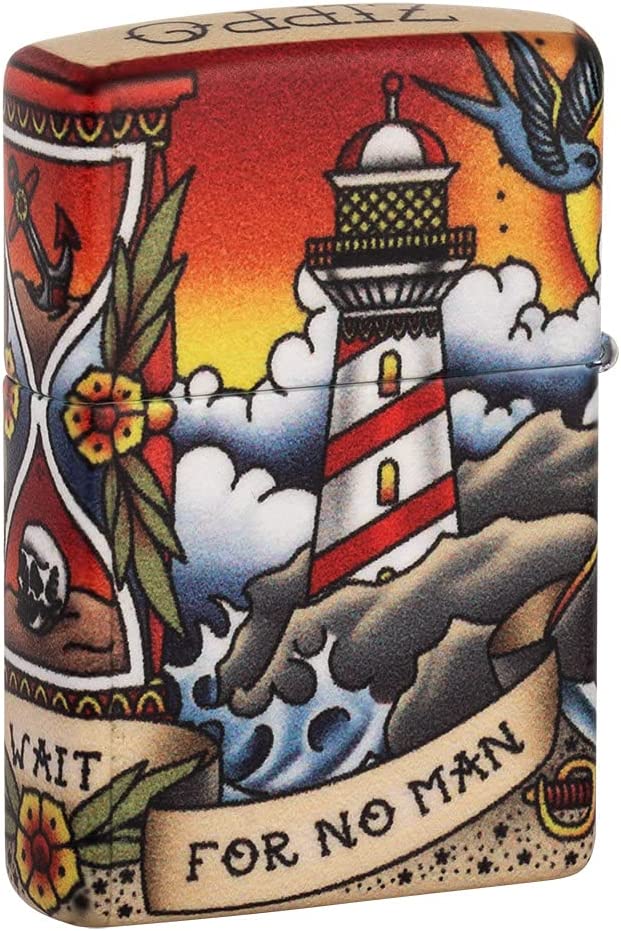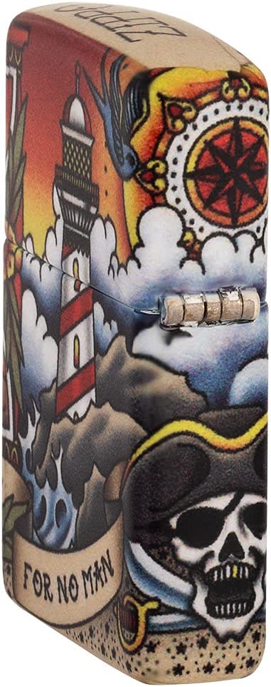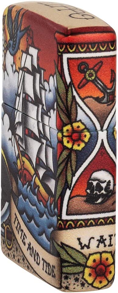 CONTENUTO – A casa riceverete un Accendino Zippo Nautical Tattoo. Che tu sia un fan dello stile del tatuaggio tradizionale americano o del design ispirato al mare aperto, questo design è destinato a riportarti indietro nel tempo dei negozi di tatuaggi vintage. Questo design utilizza il processo 540 Colour di Zippo, che consente la copertura completa della superficie dell’accendino. In tutto questo design ci sono elementi di ispirazione nautica.