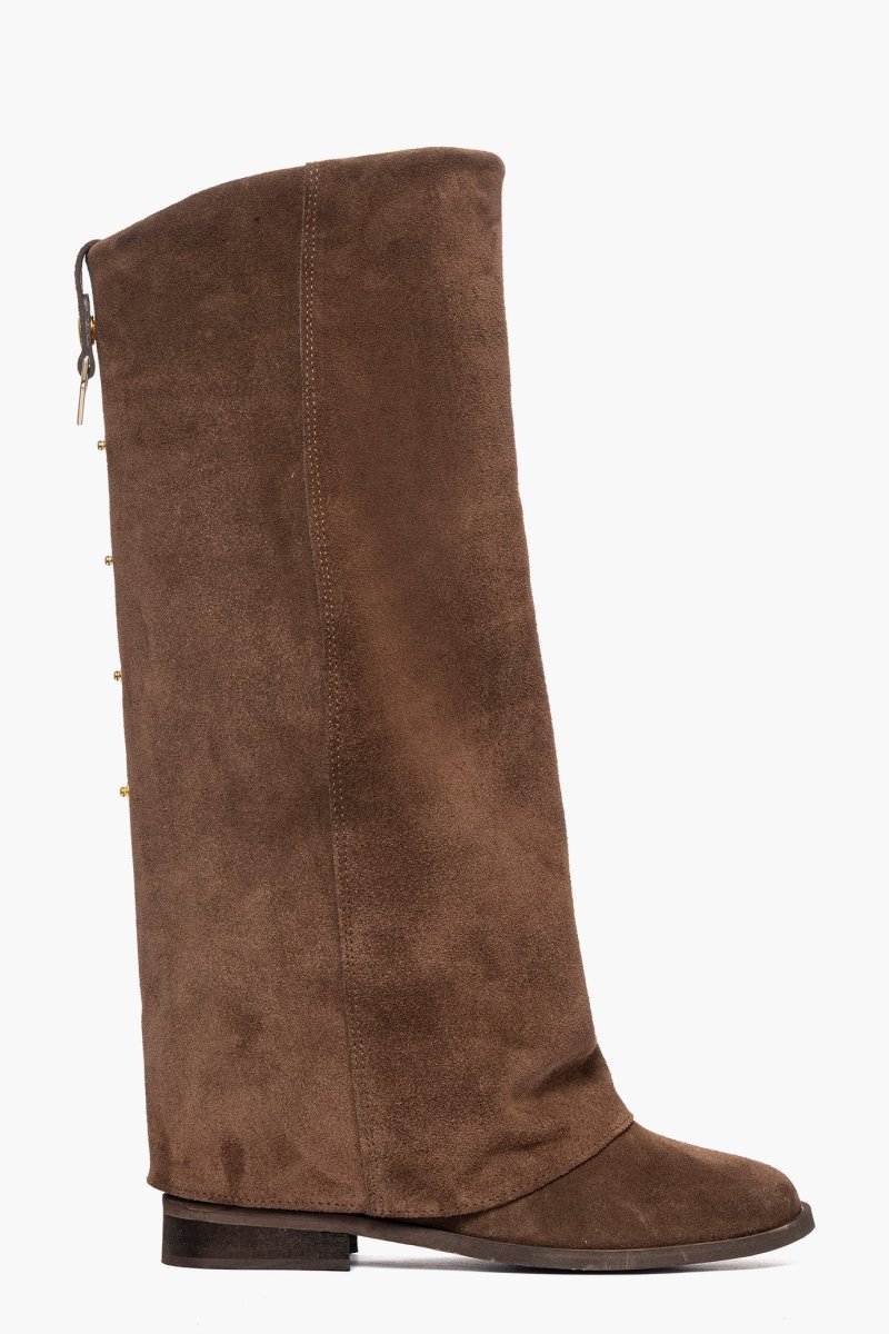 Stivali con rialzo e risvolto con clip camoscio marrone Roma 2027