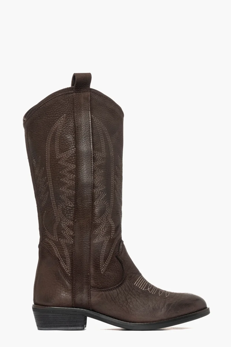 Stivali Oldwest 75 pelle testa di moro con ricamo
