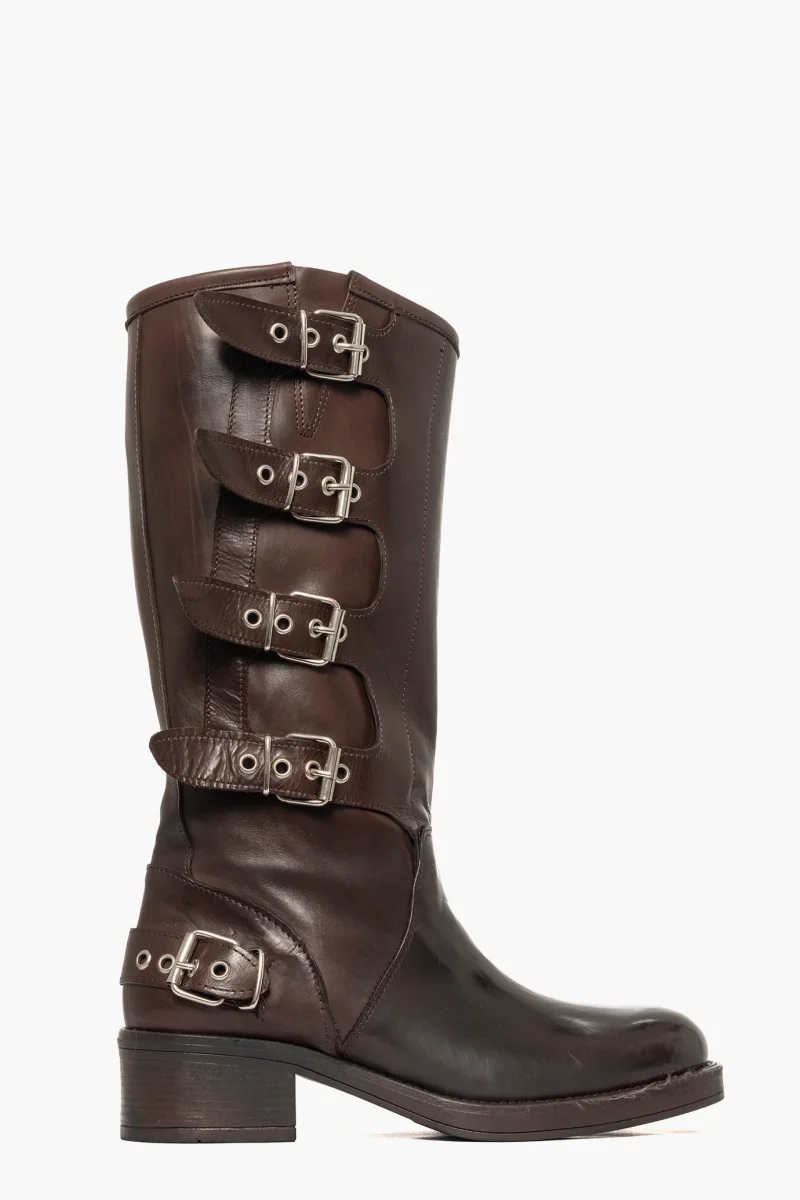 Stivali Megan 1348 in pelle testa di moro con fibbie e accessori argento