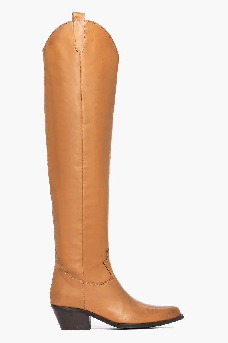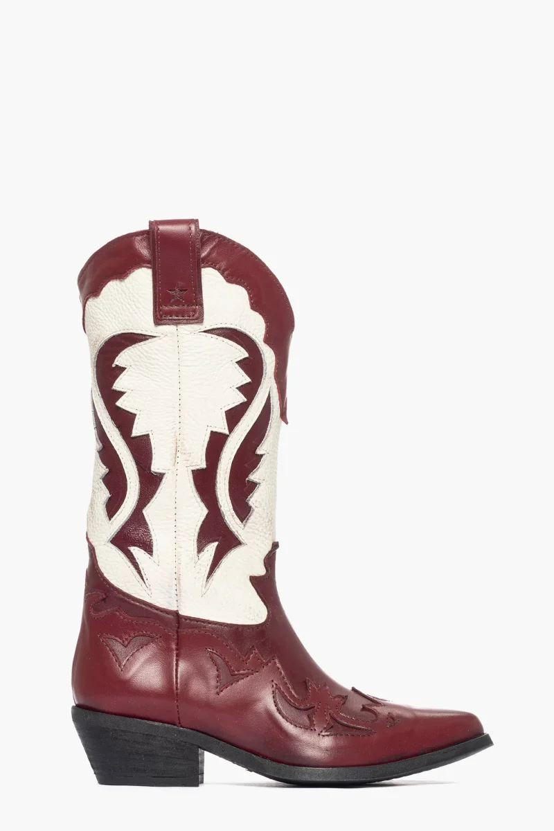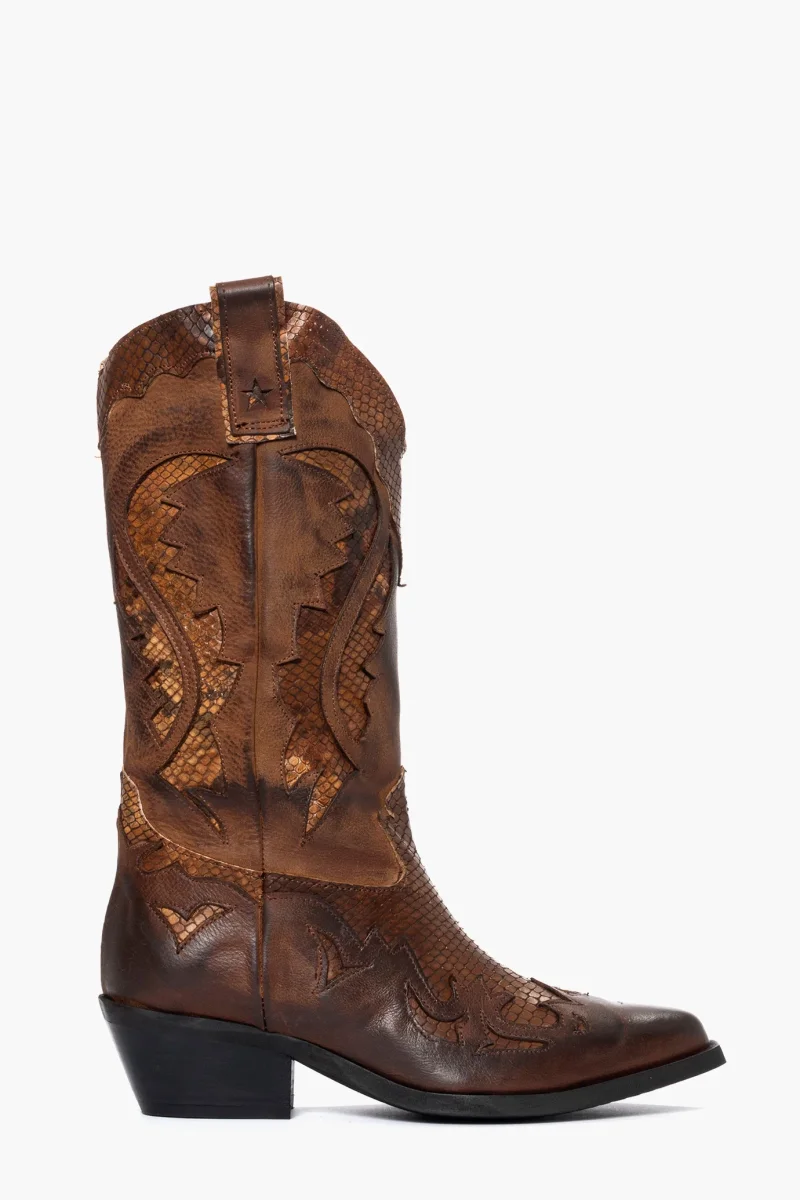 Stivali Oldwest 75 pelle marrone con ricamo beige