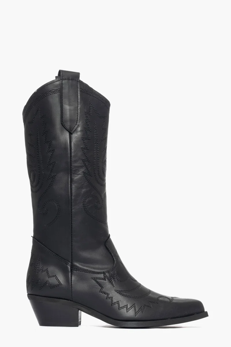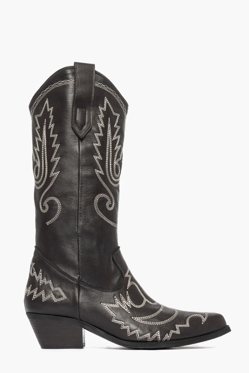Stivali Oldwest 75 pelle nero con ricamo nero