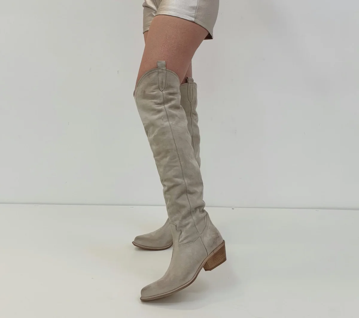 Stivali Oldwest 288 camoscio taupè con ricamo
