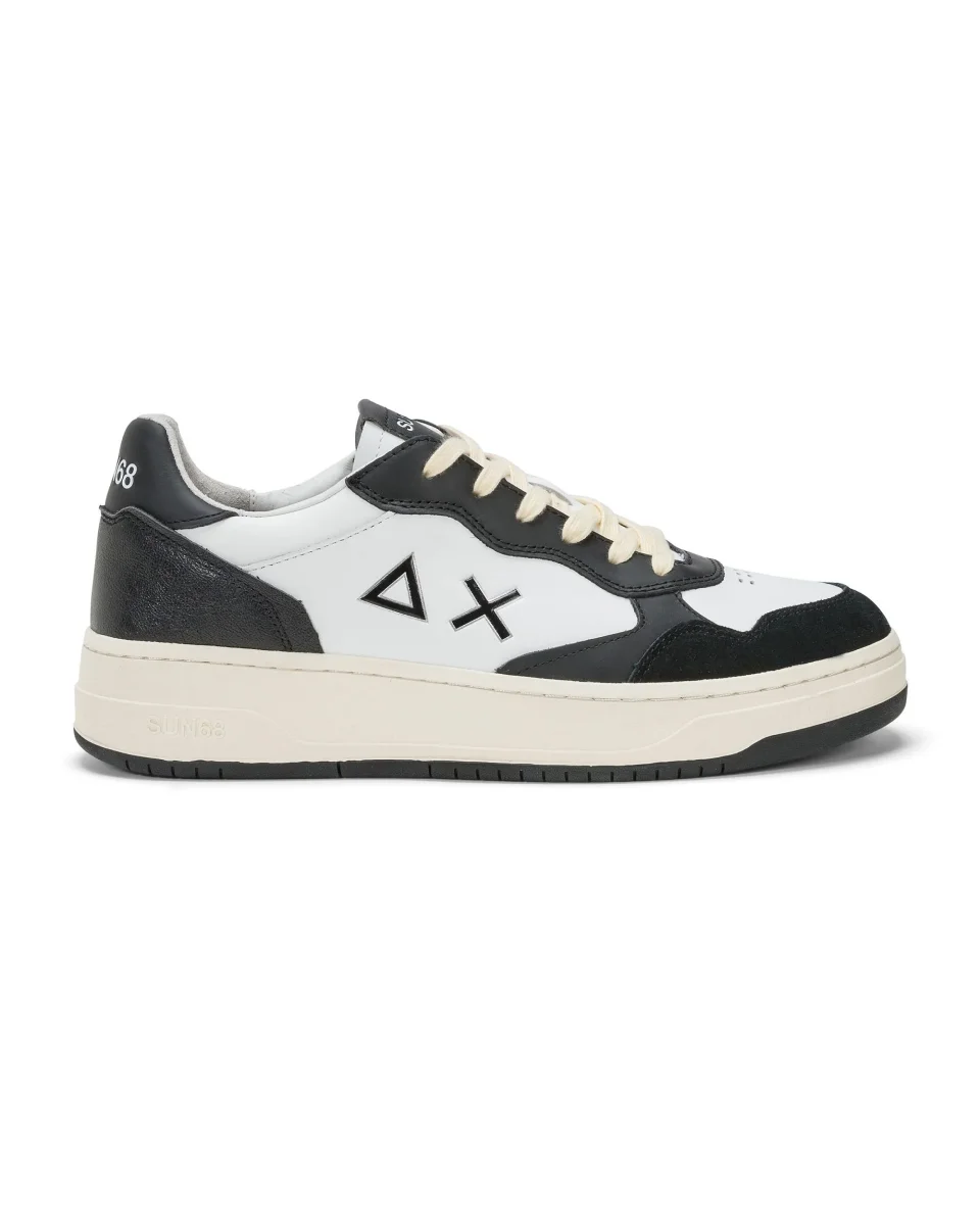 Sun68 Sneaker Casual Tomaia in Pelle Bianco Nero Uomo Z44148