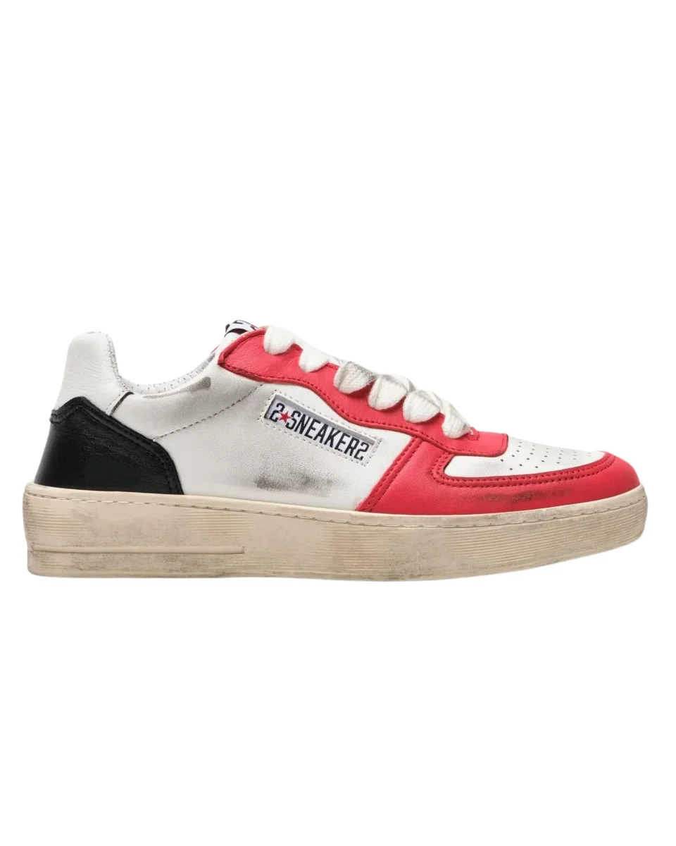2star Scarpe Sneakers Made In Italy in Pelle Bianco Marrone Uomo