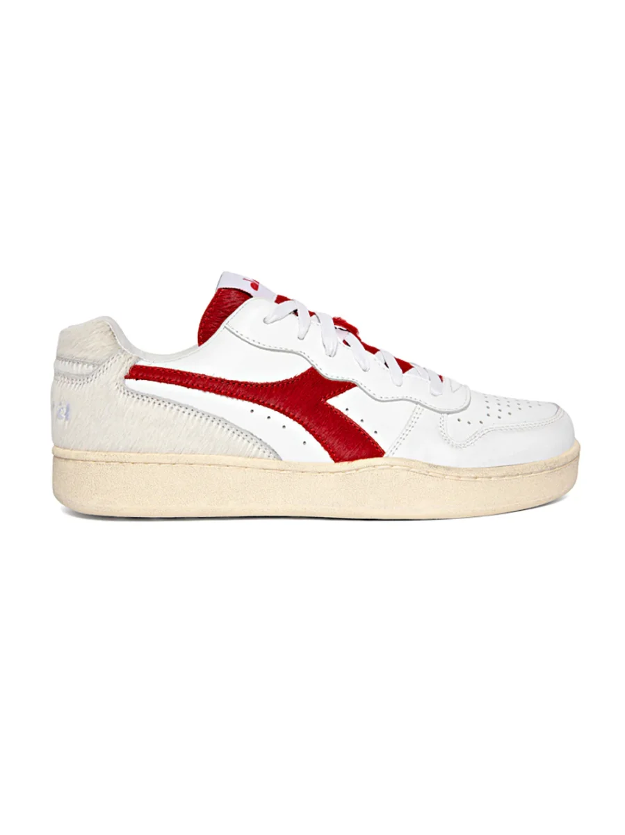 Diadora Sneakers Causal Mi Basket Low Paura in Pelle Bianco Rosso