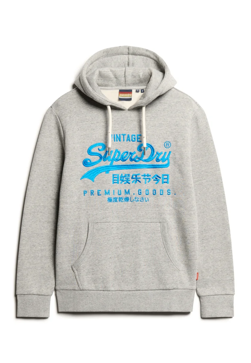 Superdry Felpa Uomo Neon VL Graphic Hoodie in misto Cotone Grigio