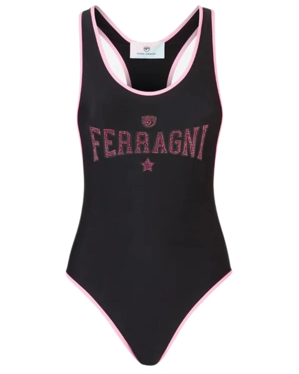 Chiara Ferragni Body con Stampa Gemme e Dettaglio in Pizzo Nero
